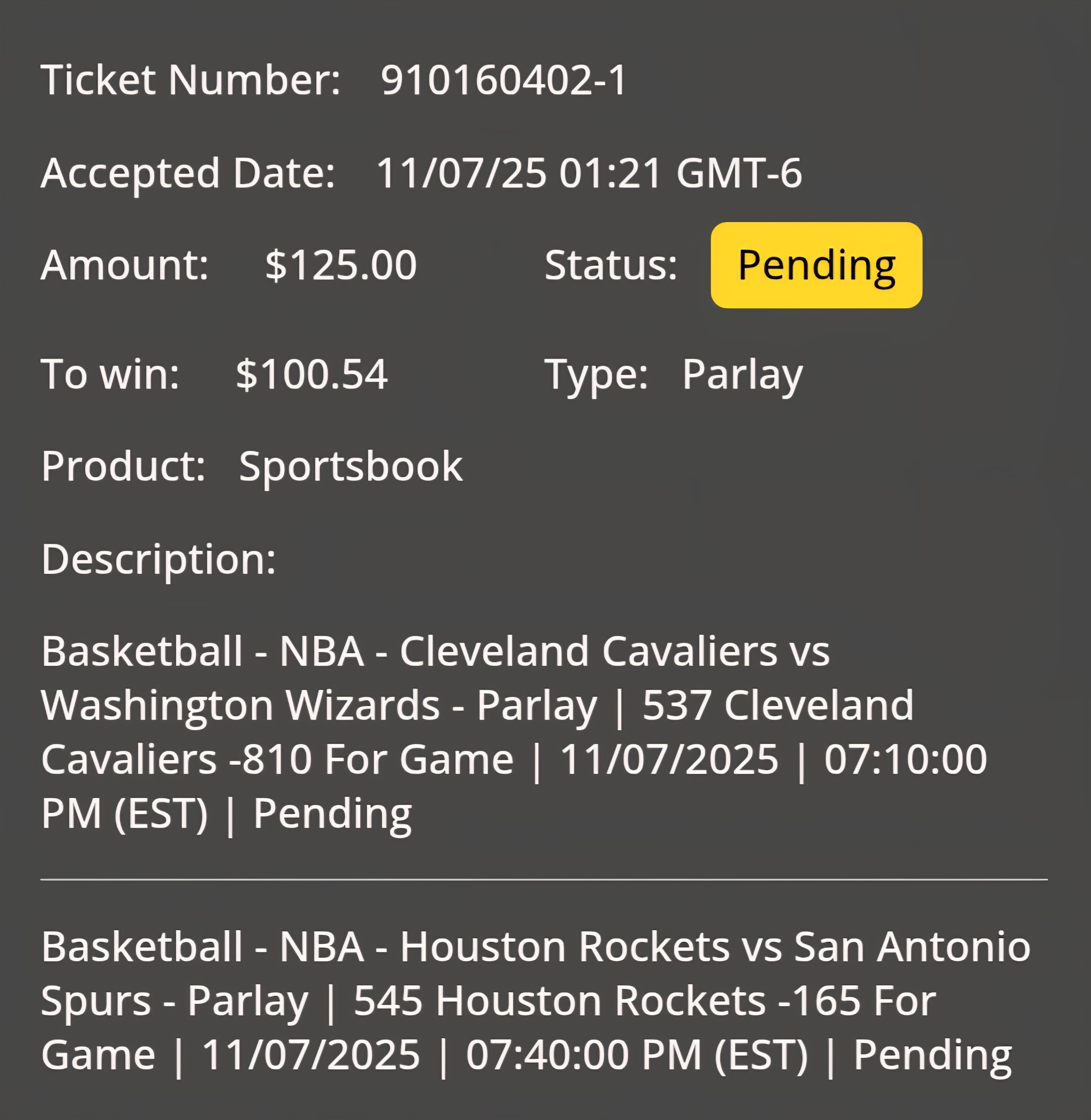 Very surprised that OKC was only -320 in that game. Outstanding value on a solid parlay play.