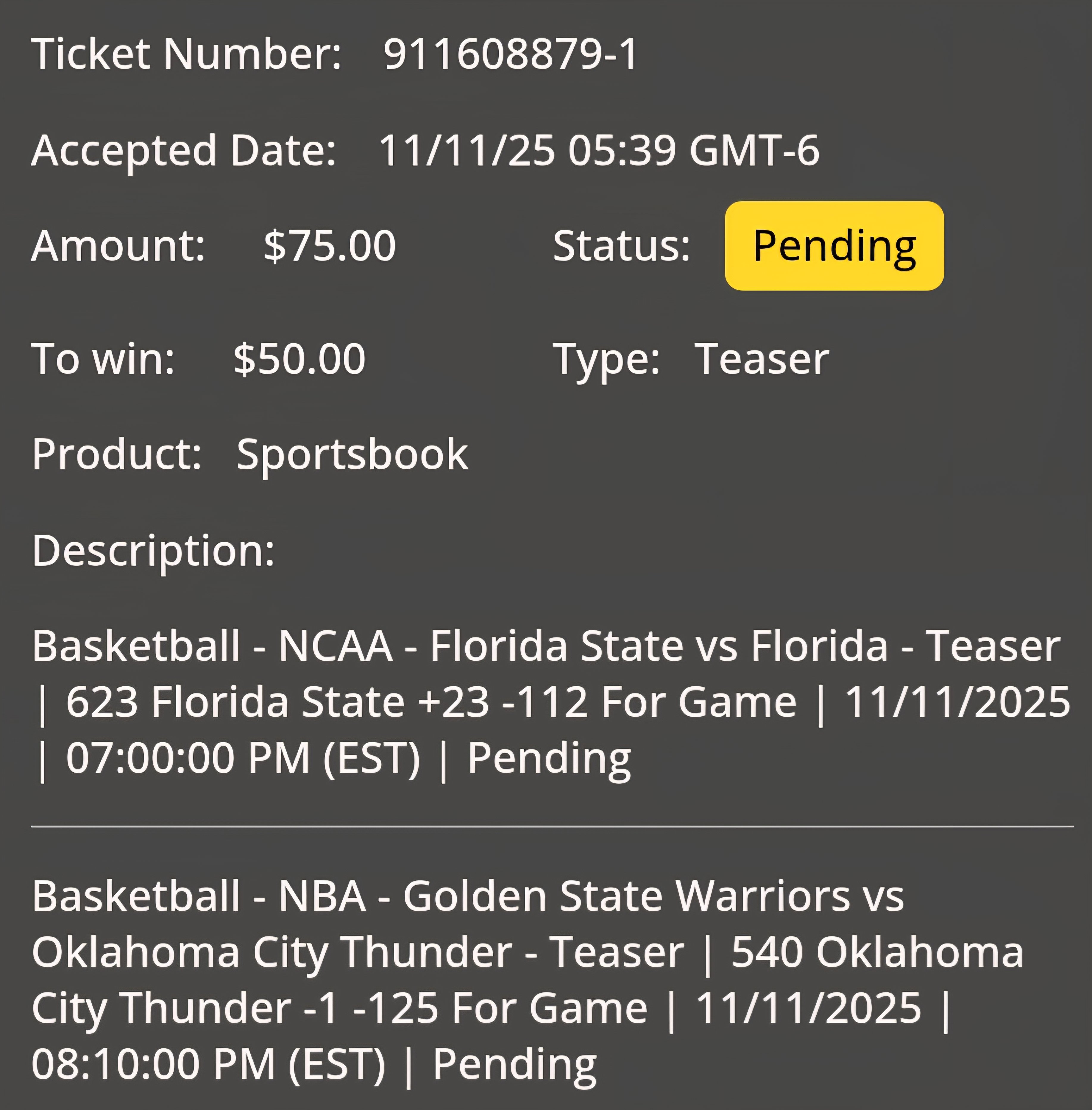 Let's try another one with a nationwide wagering handle less than 100 dollars.