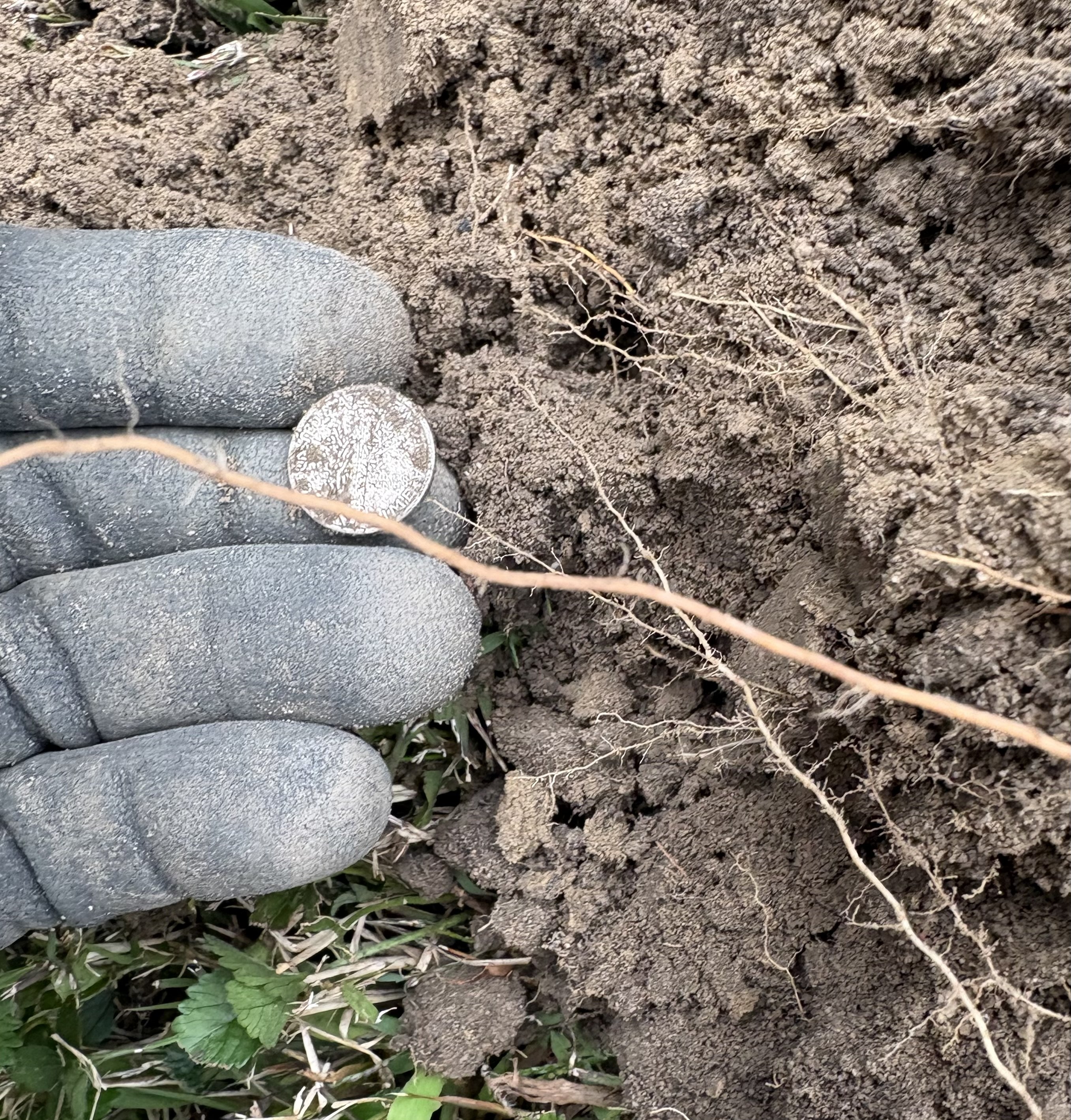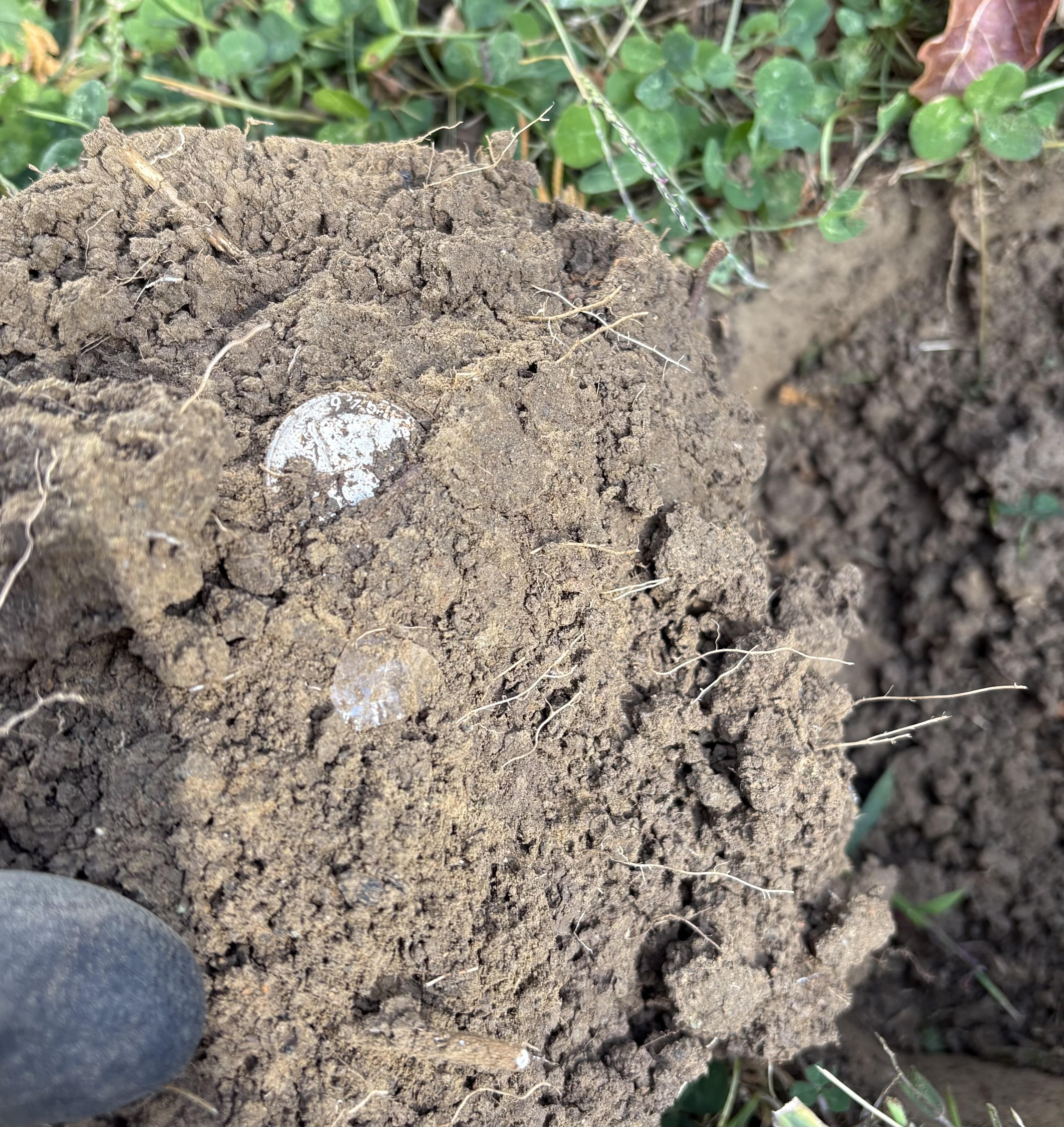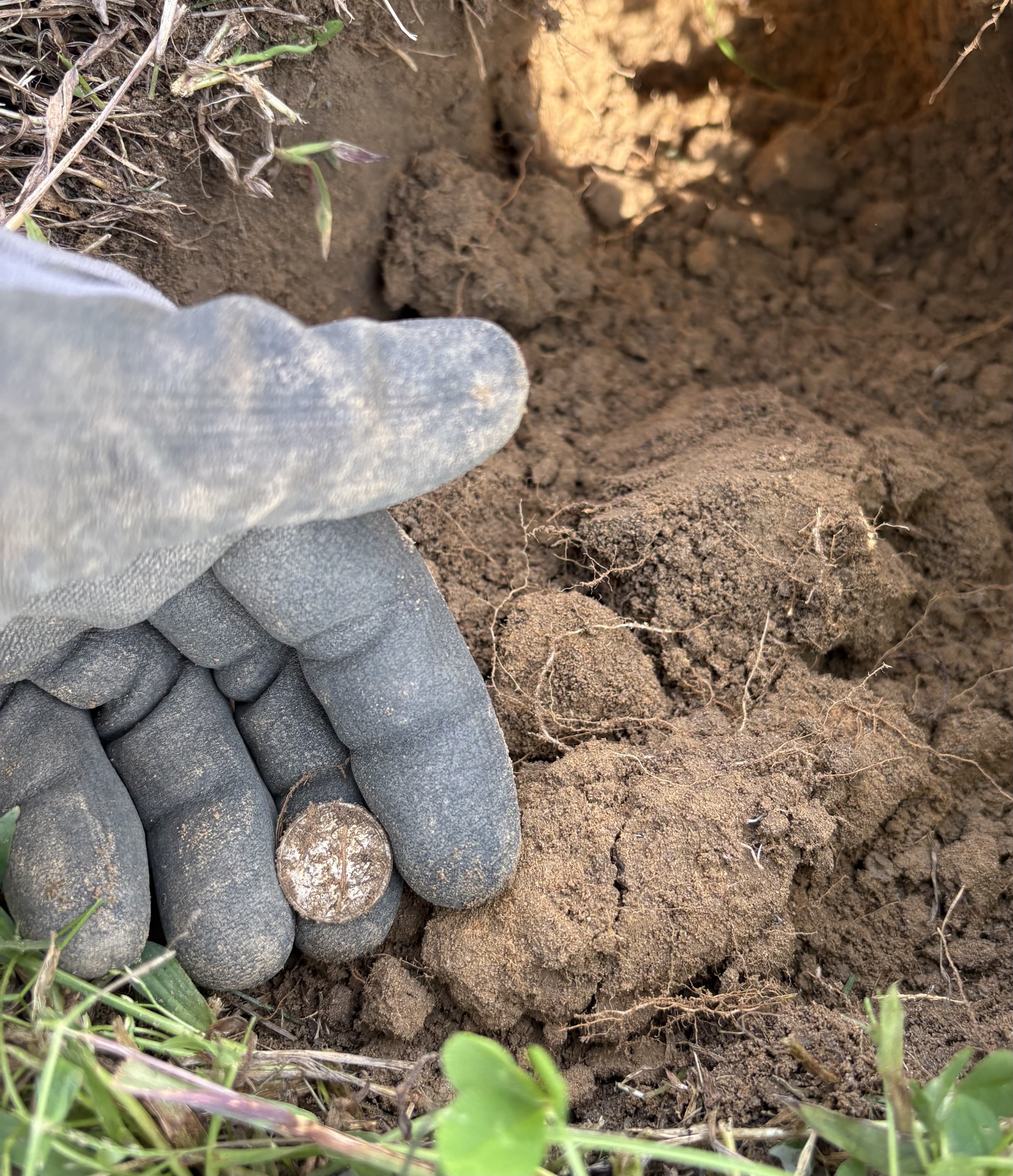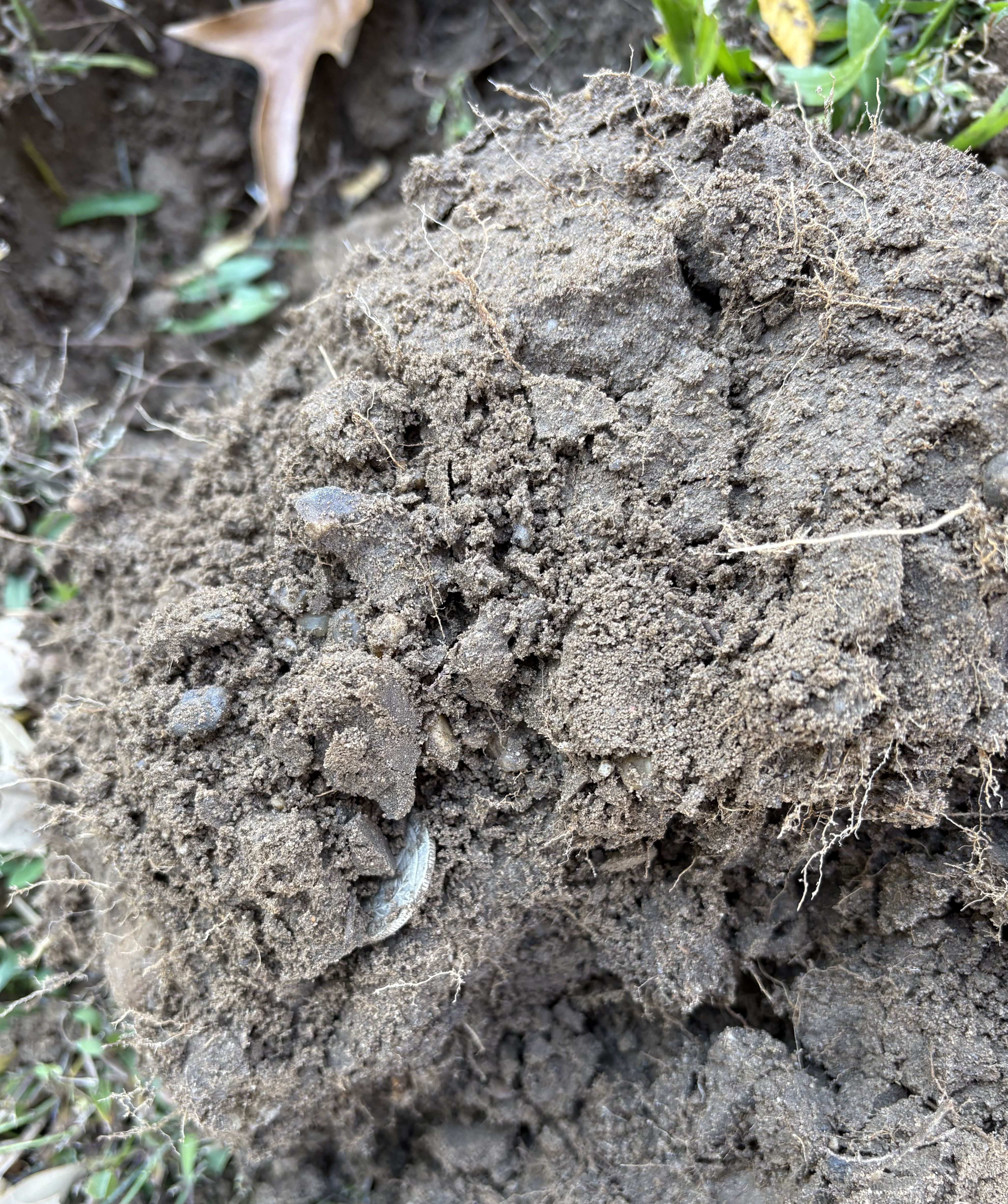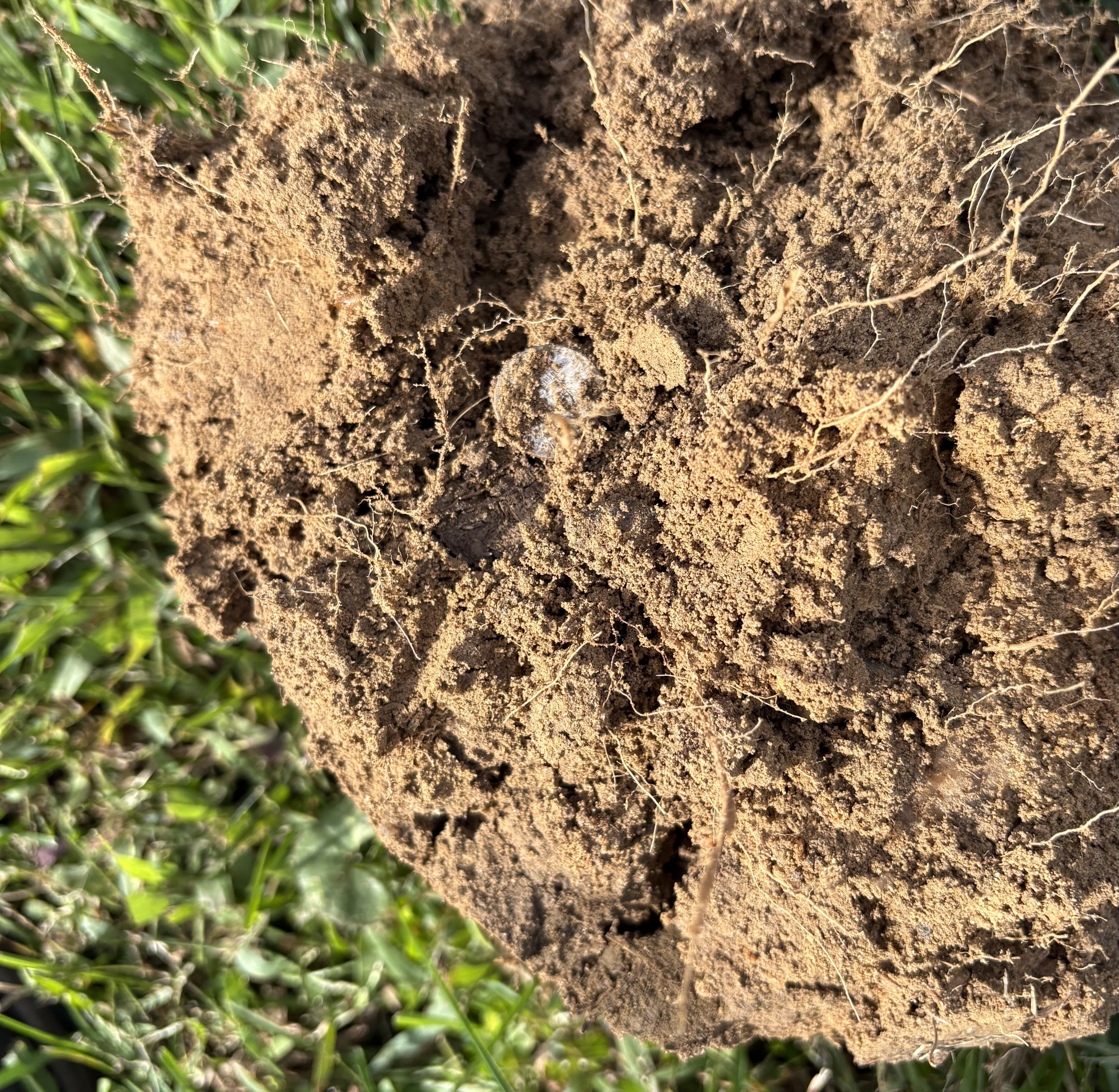This 40% Kennedy was likely a more recent drop. When the Manticore picked it up, it was reading @ 3-4 inches deep when it was actually just embedded in the surface roots of the grass. I only realized it after I dug the plug and flipped it out, using the pinpointer to confirm it was much closer to the surface than I expected. I only had to pry it out from the surface roots to reveal it.