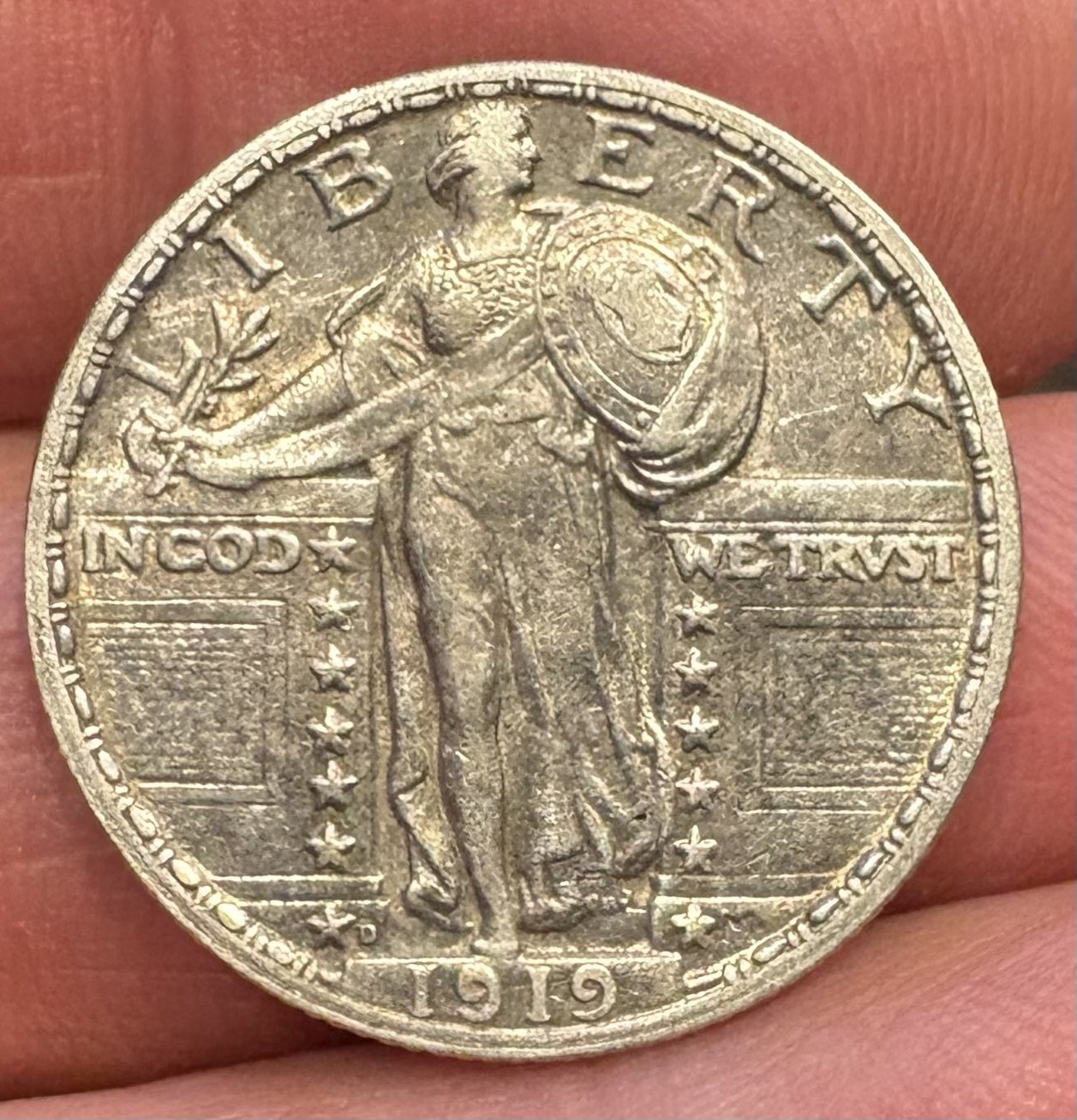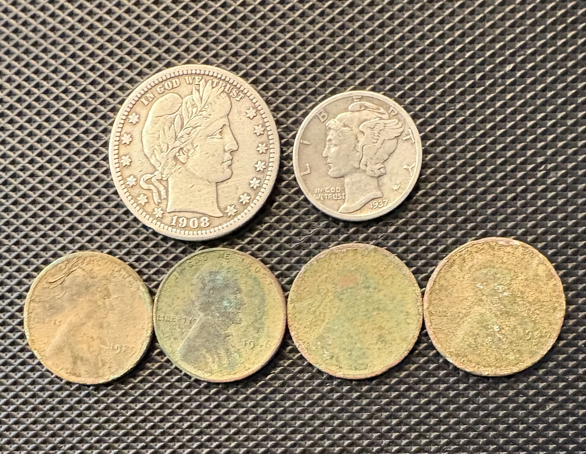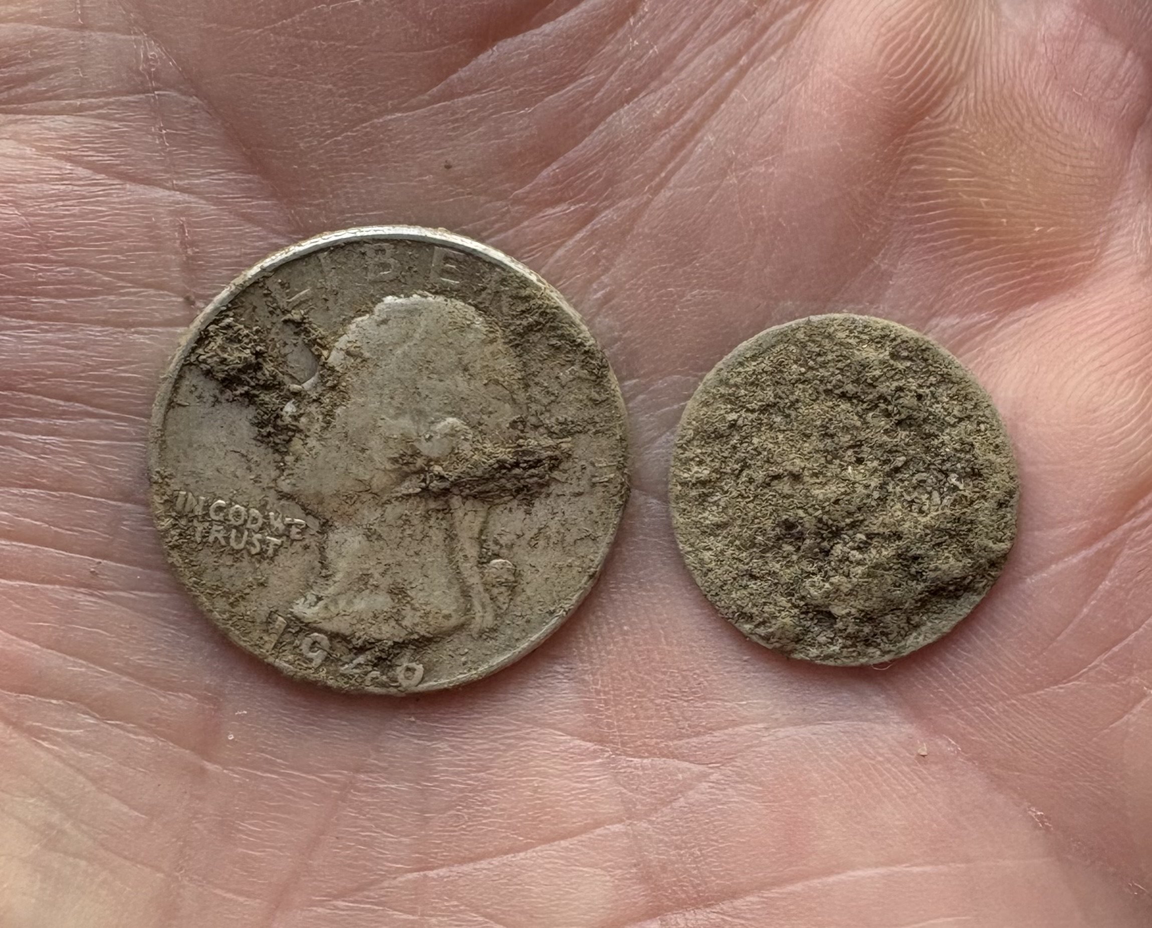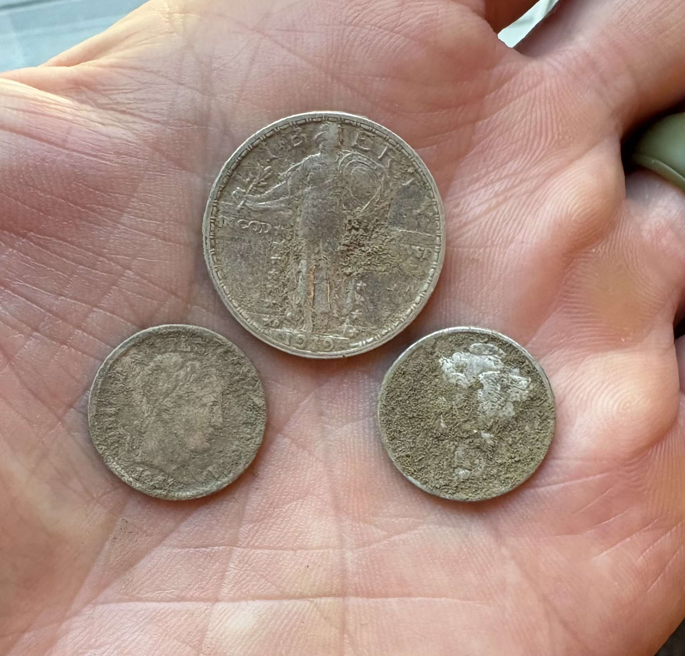 First silver I hit is a pretty significant find. When I pulled it out into the sun, I could just make out the date… found close the back corner of the house on flat ground.