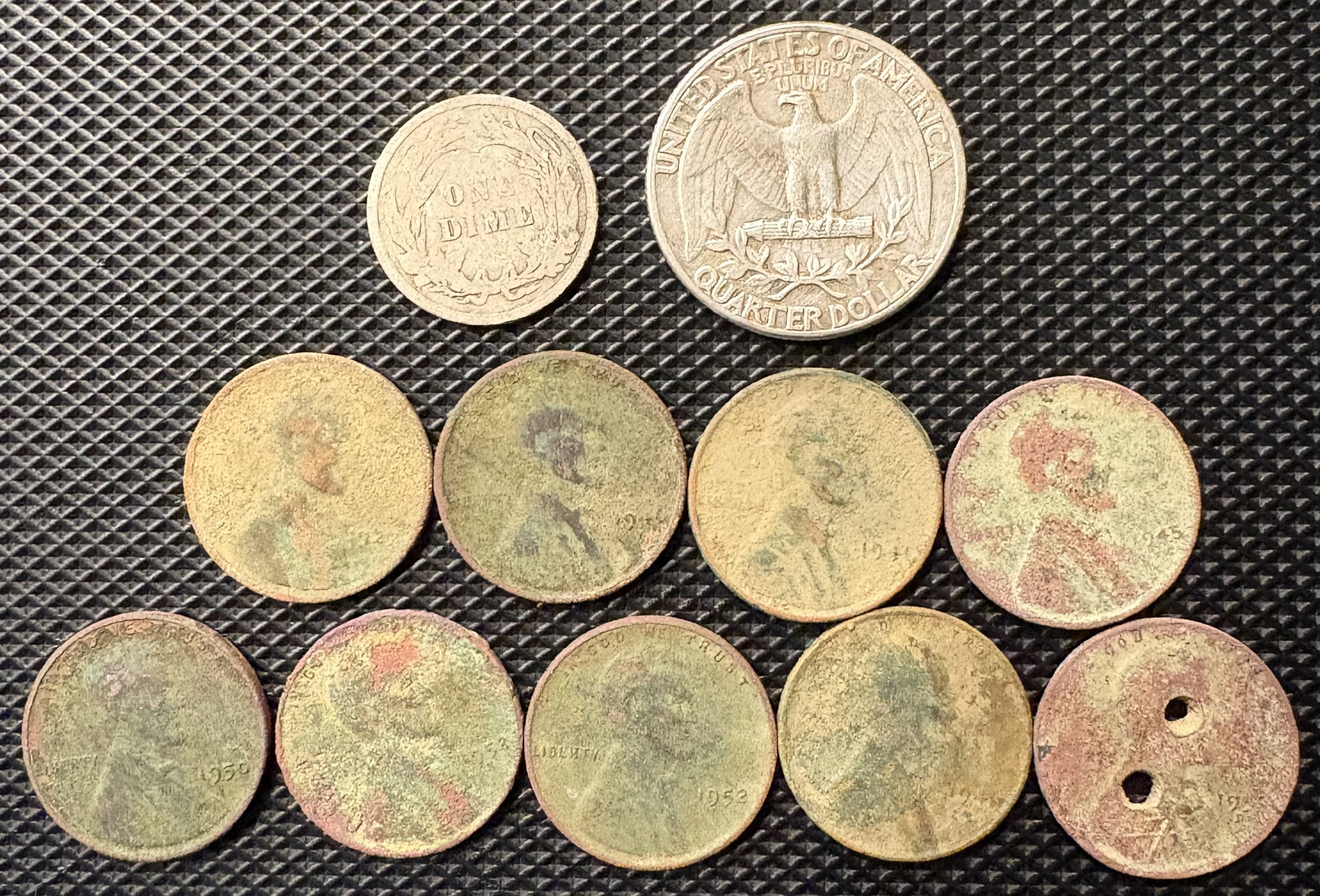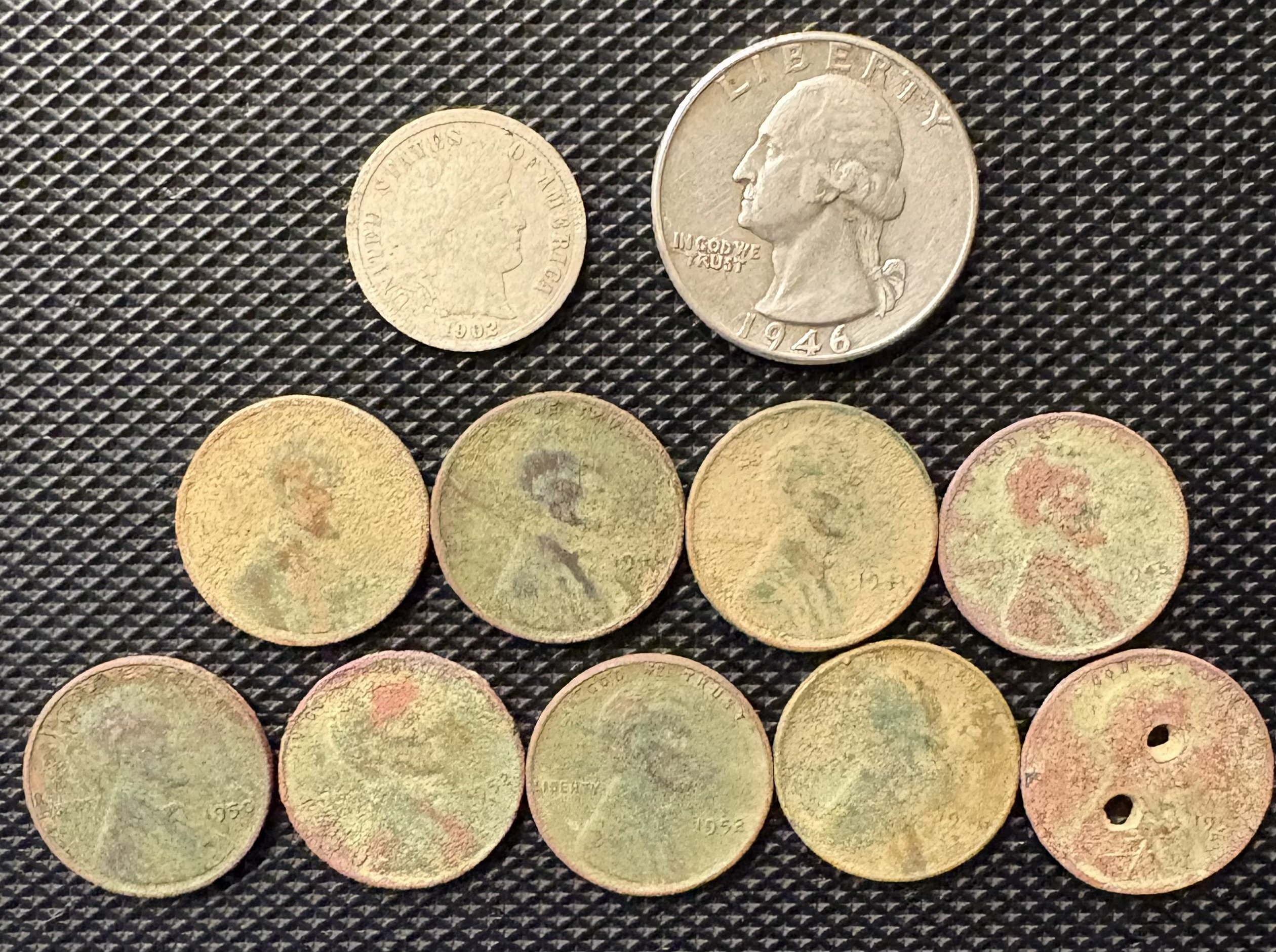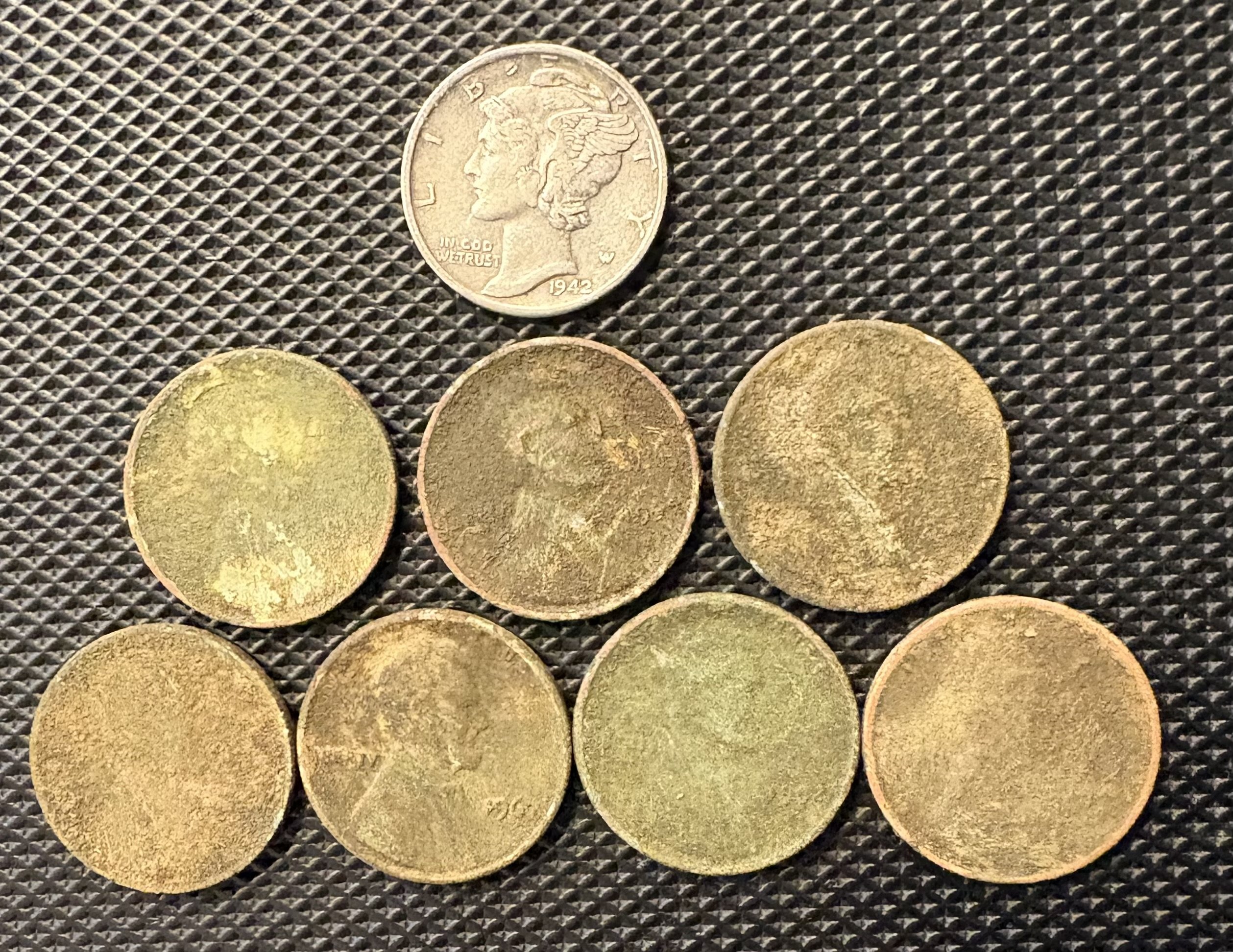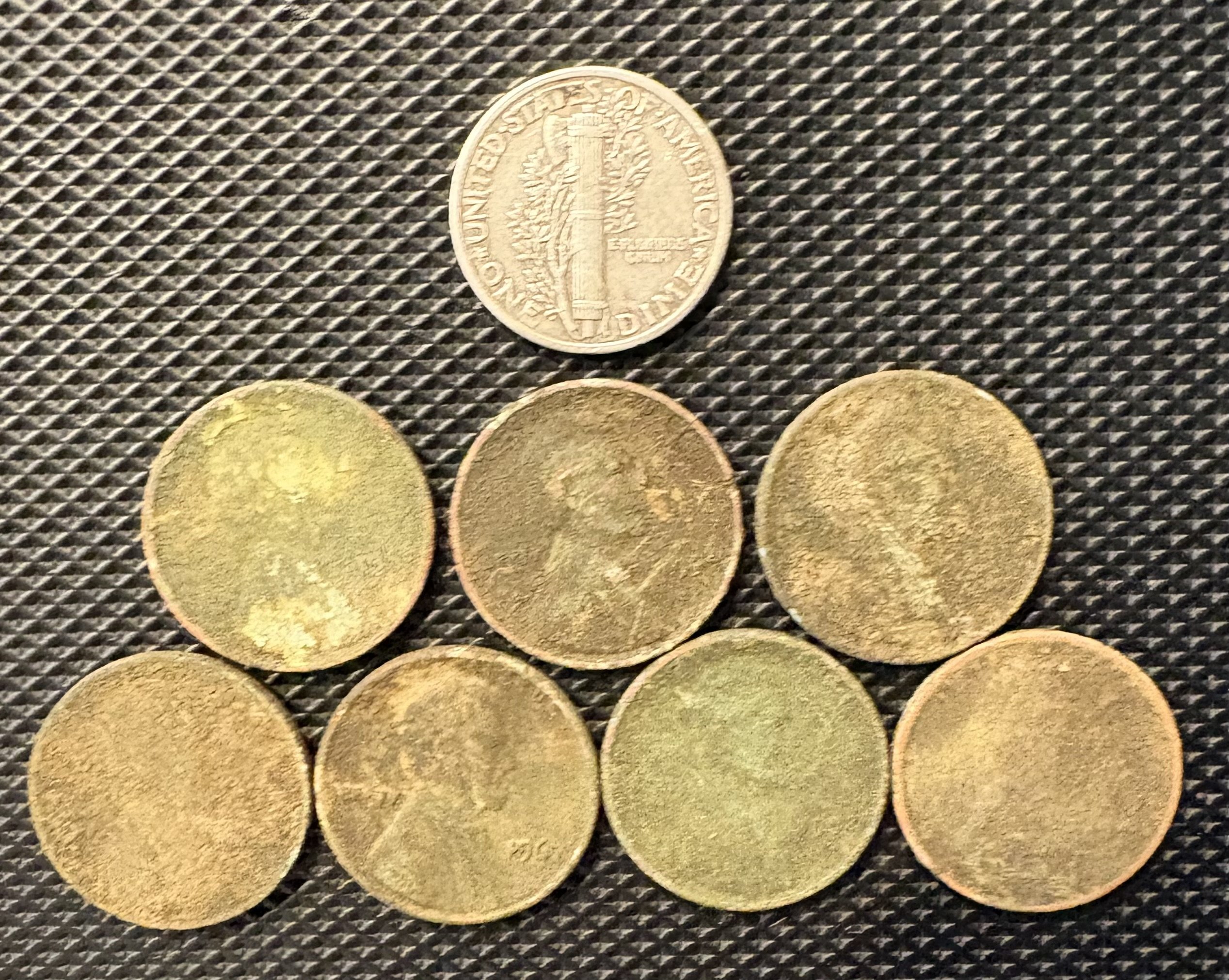 Final muster. Added a 1960-something copper to the bunch as all the wheaties are severely scorched.