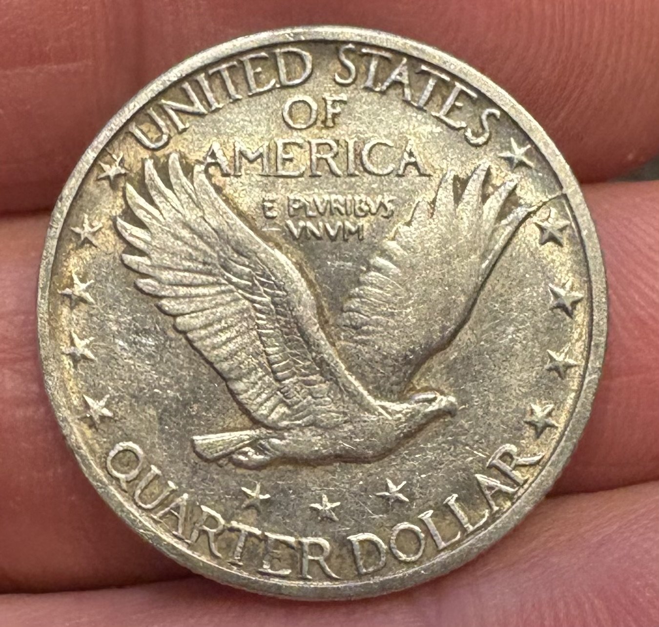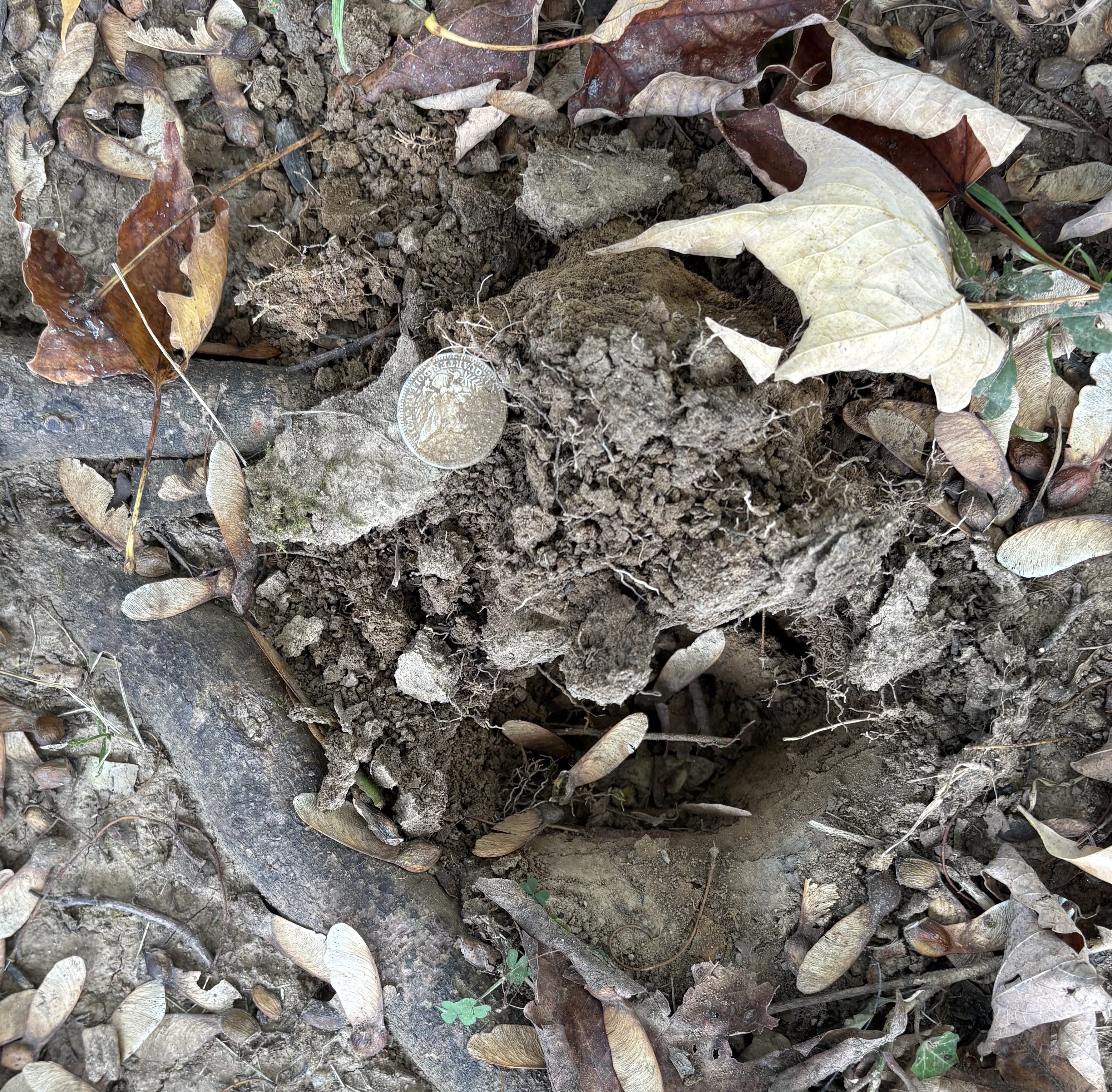 I had a little extra time this afternoon following an appointment, so I decided to circle back to the old build I scanned twice over the last two weeks, focusing on a remaining a separate, small section in the rear of the property and also the curb strips that line the property. The property sits at the intersection of two streets, with the sidewalks crumbling in places and obviously dated. The grassy strips between the sidewalks and streets run about 5 to 6ft wide with several very large oak trees growing within, and run @ 150 ft in length in both directions along the two streets. I started with the back section, and hit all clad and memorial copper. I figured the strips had already been detected, so my expectations were pretty low. I started down the first strip @ 15-20 feet, not hitting anything but lower-VDI trash, but upon approaching the base of the first oak, the Manticore started pinging a hi-tone, but the target was reading shallow… so shallow that my pinpointer was picking it up from the surface. I figured it was another clad quarter, but hey… a quarter is a quarter, right? Well… not THIS quarter…!