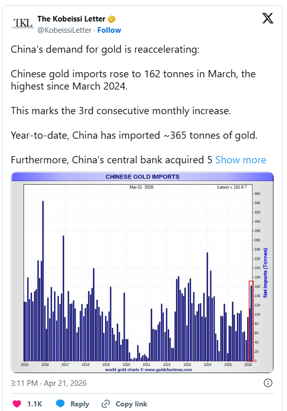 I do think SWFs and endowments and institutions moving into gold is a positive, but wonder if it will have the bang for the buck that BTC/Crypto get as a really new asset class.