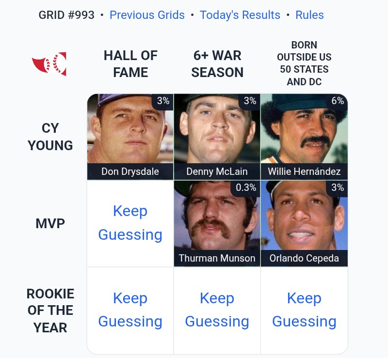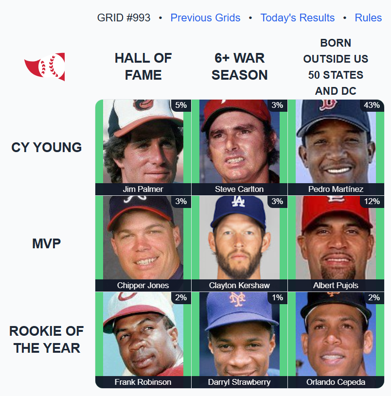 the far right column was brutal for me. took me a good half hour to come up with educated guesses in the bottom and top cells. i refused to pick Pedro lol