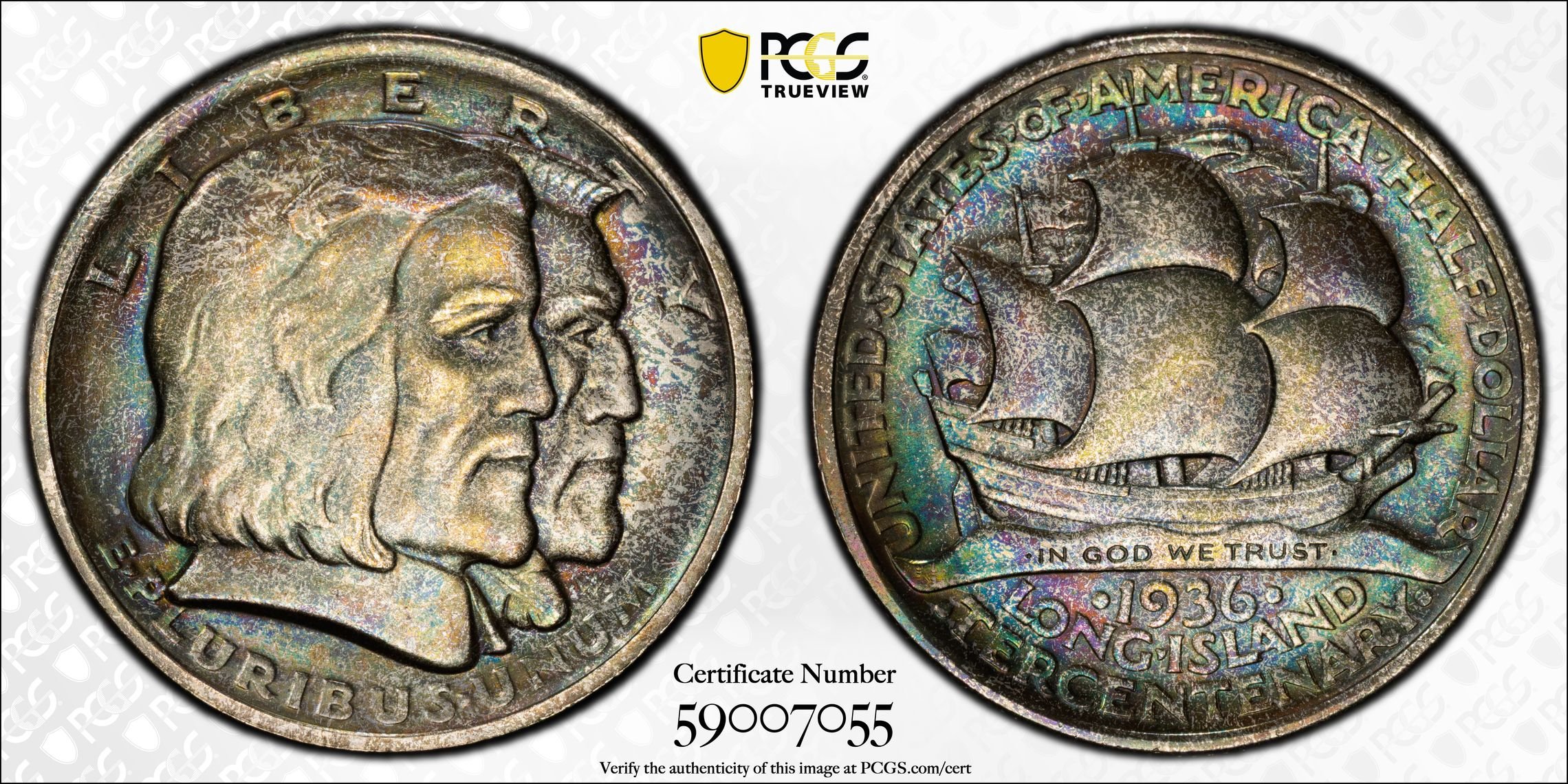https://www.greatcollections.com/Coin/1932088/1936-Long-Island-Tercentenary-Half-Dollar-PCGS-Genuine-Unc-Details-Art-Toned