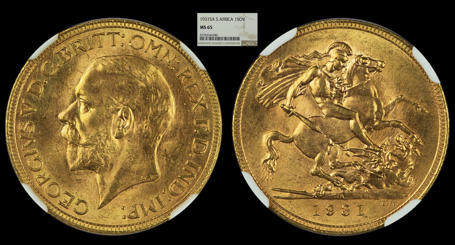 *****SOLD***** GEORGE V 1931 SA GOLD SOVEREIGN NGC MS65!