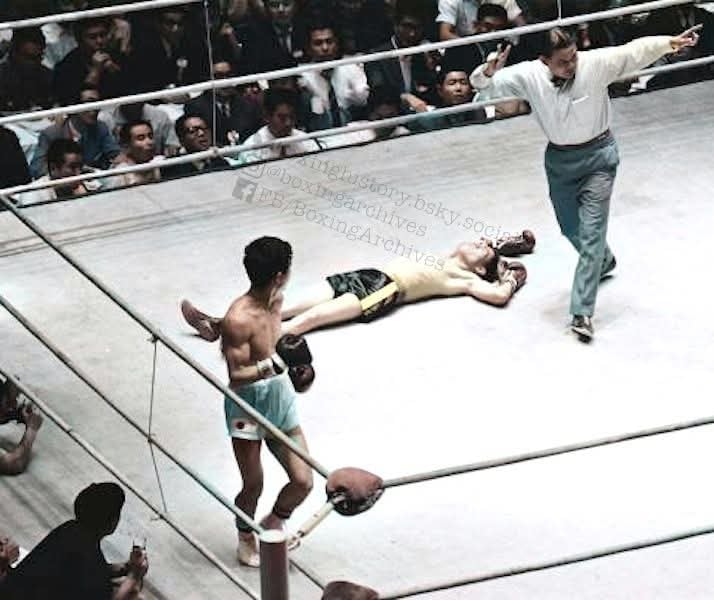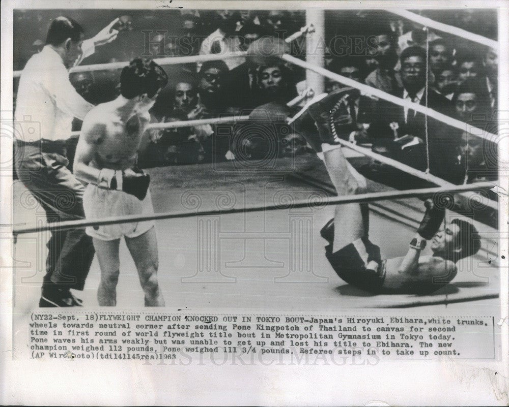 23-year-old Hiroyuki Ebihara became Japan's third world champion when he scored a shocking 1st round KO of Pone Kingpetch at the Metropolitan Gym in Tokyo, Japan in 1963.