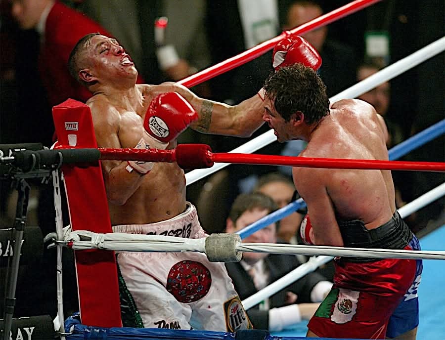 As he walked to his corner, it was clear Vargas had been wobbled, and the one-minute rest wasn't enough. In round 11, a snapping left hook sent Vargas onto his back. Vargas rose, but he was hurt and when action resumed De La Hoya swarmed him in the corner, rocked Vargas' head back and forced a stoppage.