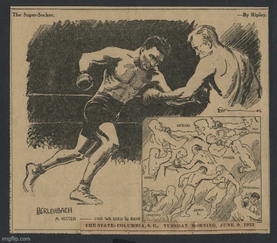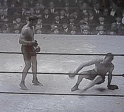 Paul Berlenbach floors Young Stribling in 1926, Berlenbach would retain his light heavyweight title by 15 round decision.