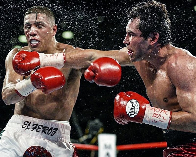 "The Golden Boy" Oscar De La Hoya won a tense grudge match against "Ferocious" Fernando Vargas by 11th round TKO to win The Ring and unified junior middleweight titles at the Mandalay Bay Resort & Casino in Las Vegas, Nevada in 2002.