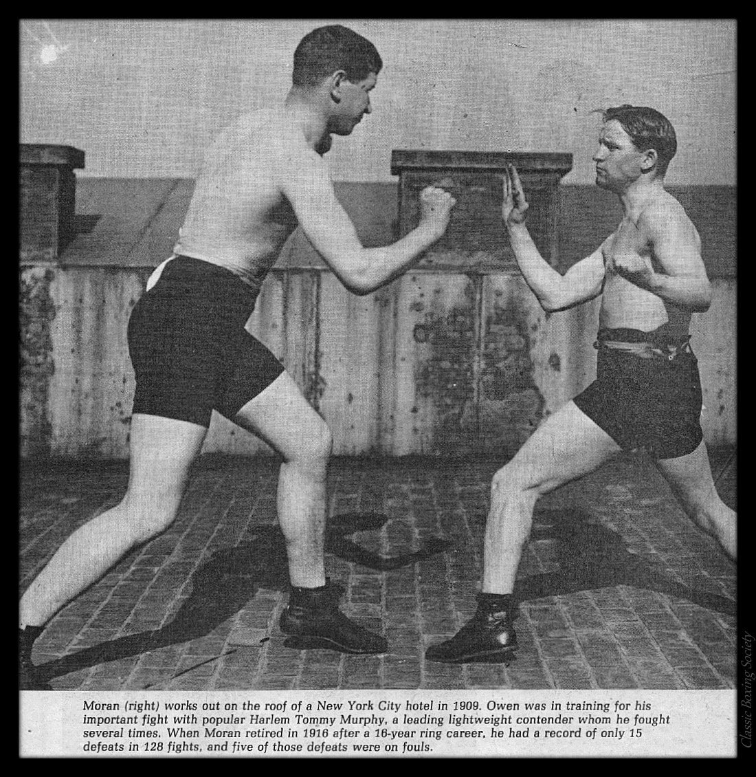 Only the unbiased boxing observers of the day knew the truth of some of these affairs, and there was certainly no doubt in the mind of the esteemed Nat Fleischer that Moran belonged with the all-time elite. In Nat’s view, Owen was the third greatest lightweight behind the dynamic duo of Joe Gans and Benny Leonard.