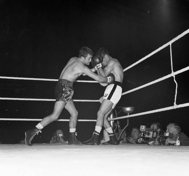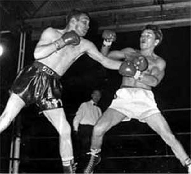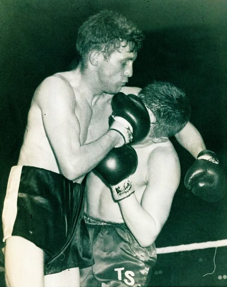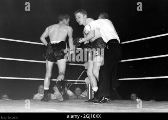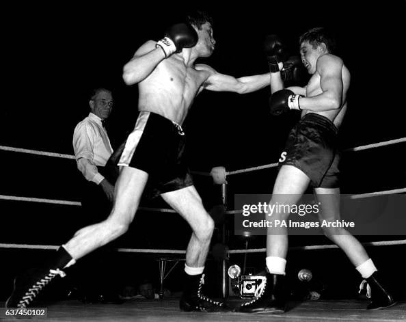 Great image from Howard Winstone vs Derry Treanor, Winstone stopped Treanor in the 14th round to defend his British featherweight title.