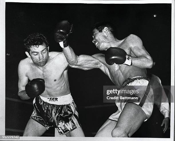 Howard Winstone lands a body shot on Saldivar during one of their three fights.