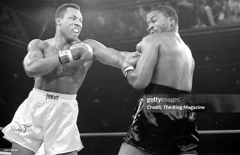 The legendary trainer Angelo Dundee was once asked who was the hardest puncher he ever trained, and he said Florentino "The Ox" Fernandez was the hardest puncher he trained, but he also said "Pinklon Thomas could really whack." One thing about Pinklon Thomas, he had a masterful left hand, he could really punish you with that left. He could use it as a jab and pepper you with it, or he could use it as a hook, either way he could really bust you up with it.