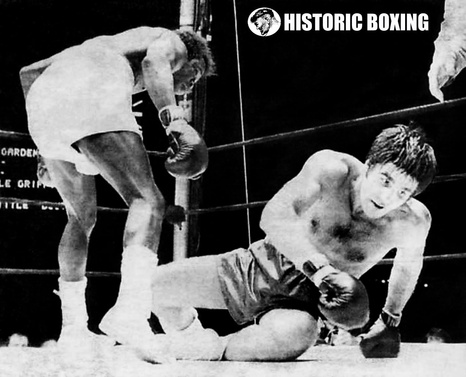 Benvenuti’s strong start had the Garden in an uproar, but disaster nearly struck in the fourth round when Griffith delivered a thunderbolt, a right hand that sent Benvenuti down and sprawling along the ropes. Nino was badly hurt with more than enough time in the round for Griffith to finish him. Later, Griffith would put the blame on himself for Benvenuti escaping the crisis. “I went right hand crazy,” he said. It is hard to fathom what would have become of Benvenuti had he not survived the round. Perhaps he would have regrouped and won the title at a later date, but his career as we know it and his rivalry with Griffith never would have materialized.