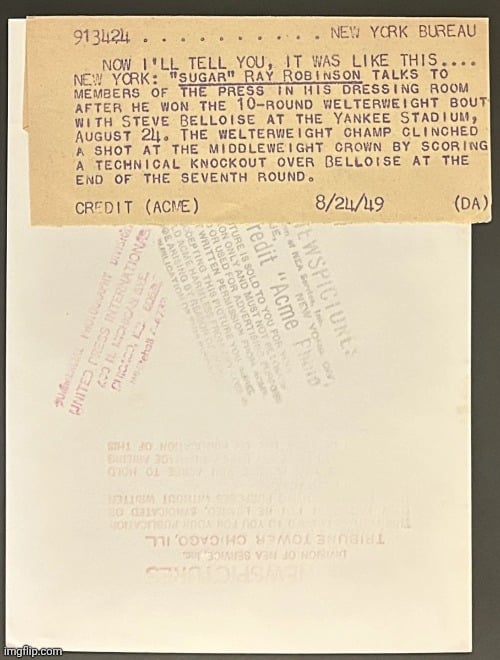 I actually own the type 1 original photo of that image of Sugar Ray Robinson surrounded by the press. Here it is.