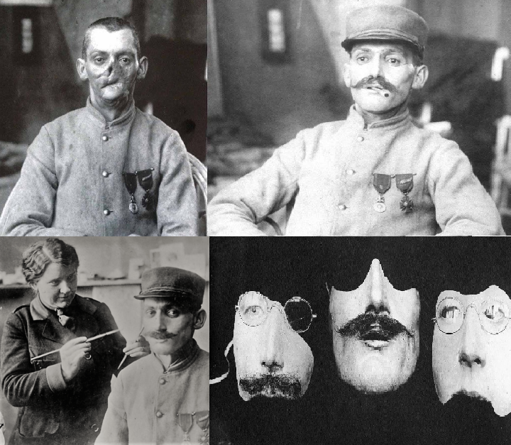 And it's very realistic for the time period, Anna Coleman Ladd created masks for French soldiers in 1918 who suffered facial injuries. She would first cast a mould of the patients face as a reference, then make an attachable mask painted to their matching skin tone.