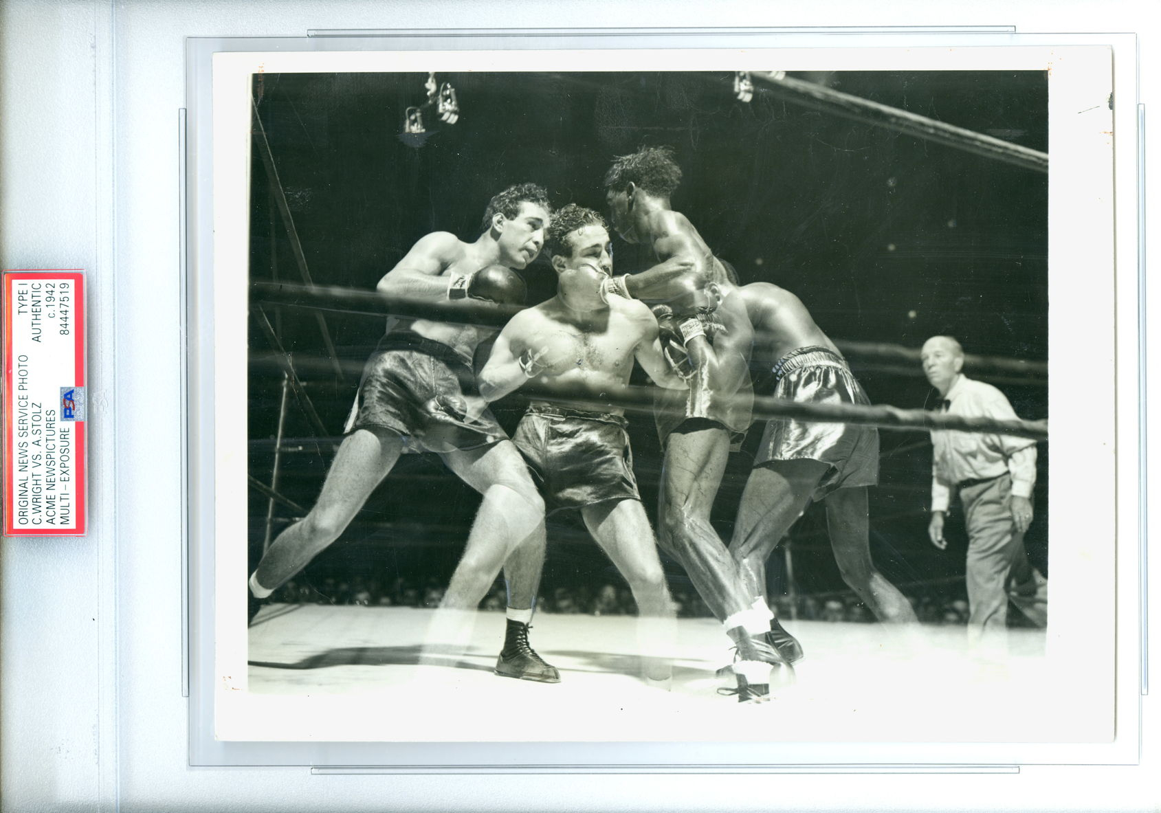 I've always been fascinated by fame, the media, and the press, this is one of my favorite photos, Sugar Ray Robinson surrounded by the press after his fight with Steve Belloise in 1949. Robinson was in his prime at this time, he was a superstar, and it's just an awesome photo.