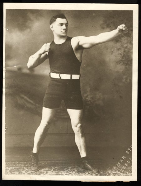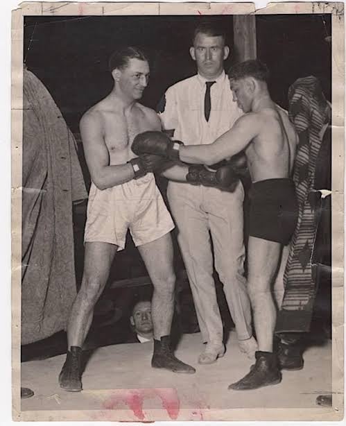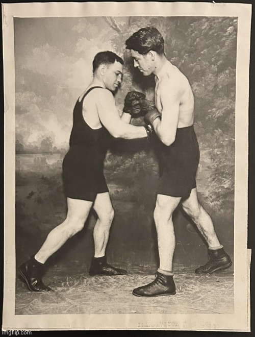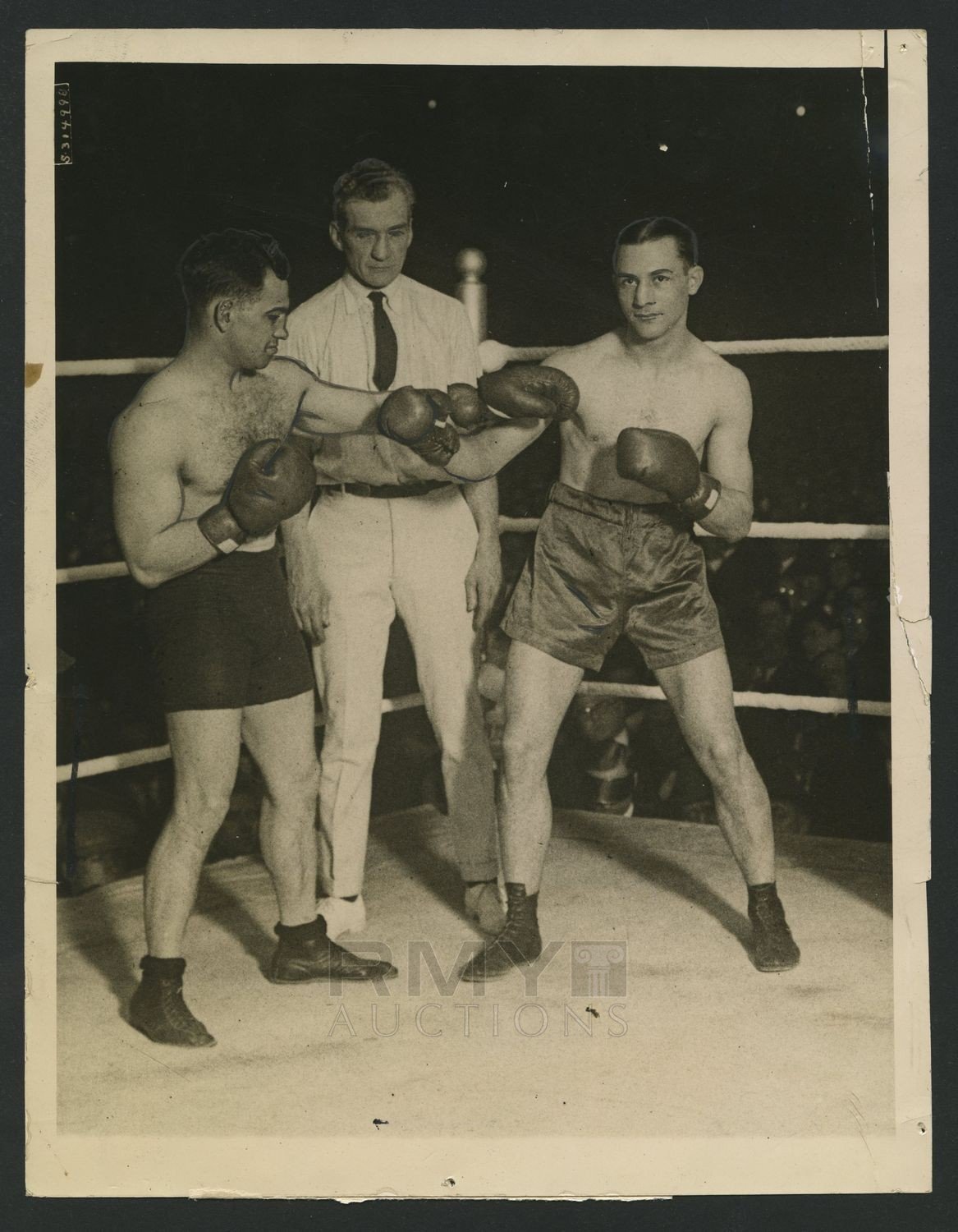 Let's get a few good photos of Rocky Kansas in here. This is a photo of Rocky (left) and Sammy Mandell facing off right before their fight in 1926, Rocky is pictured here demonstrating his punch to solar plexus of Mandell. Like I said before, Rocky Kansas was known for his wicked body punching.