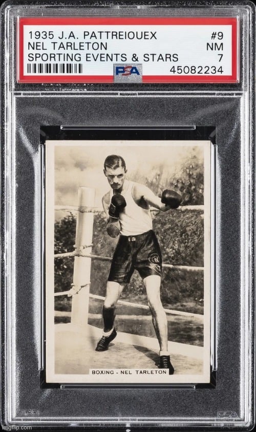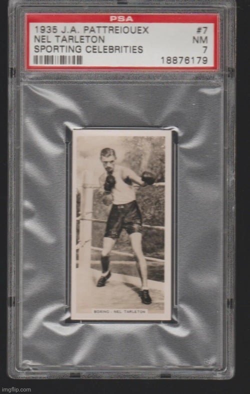 I love photos that were used on trading cards, and this is the photo of Nel Tarleton that was used on his 1935 JA Pattreiouex Sporting Celebrities card. There are two different variations of this card, the normal size and the thinner version, the thinner version can be more difficult to find. This is the same set that features the iconic Joe Louis rookie card, the thinner version of the Louis rookie card can be quite pricey, regardless of the grade. Here are both versions of the Nel Tarleton card. I would love to own the type 1 original photo that was used for this card.