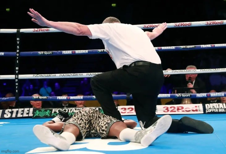 And the ref officially waved away the contest just five seconds later as the South African lay sprawled on his back.