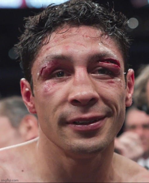 Israel Vazquez vs Rafael Marquez, 2010. These two put on four legendary fights that no fan could say didn’t entertain, each fight had the blood, sweat and tears you would expect when two bantamweights put it all on the line. The fourth fight was undoubtedly one too far for Vazquez, who it was rumoured wore a face-mask in camp due to fears his numerous cuts over the years would open up. As expected that is exactly what happened in Part IV against fellow Mexican Marquez. Vazquez’s left eyebrow looked like it wanted to escape at the end and he had a big slit above the right eye as well.
