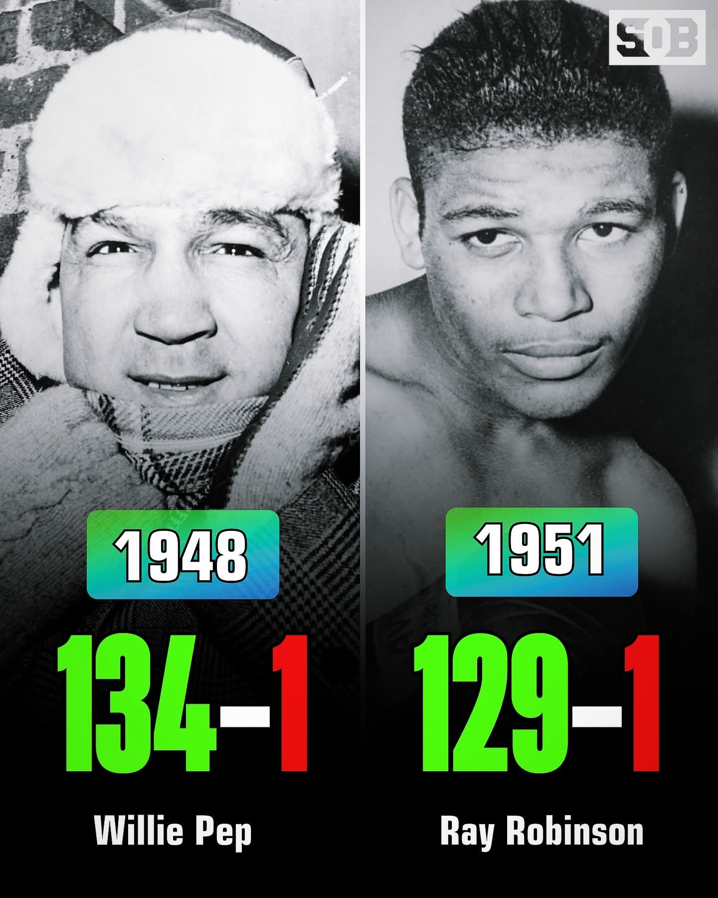Both Willie Pep and Sugar Ray Robinson put up absurd records in their primes, numbers that almost don’t even look real.