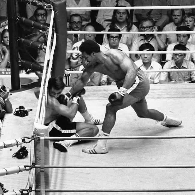 Prime George Foreman at his most frightening, as he clubs Joe King Roman senseless.