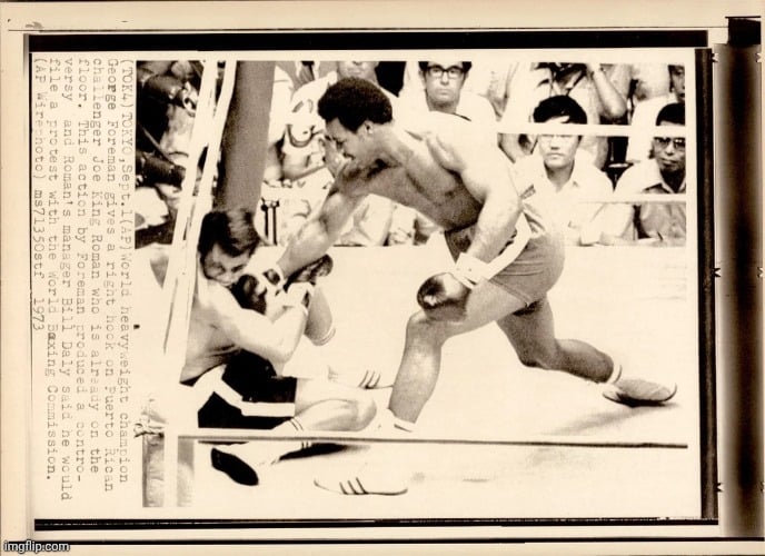 Roman, a Puerto Rican heavyweight who fought out of Florida, was no match for Foreman. When Roman tried to move early, Foreman cut off the ring and trapped him near the ropes. A left hook caught Roman on the temple and sent him down into the ropes quite awkwardly, and Foreman then caught Roman with a right hand as he was down (pictured).