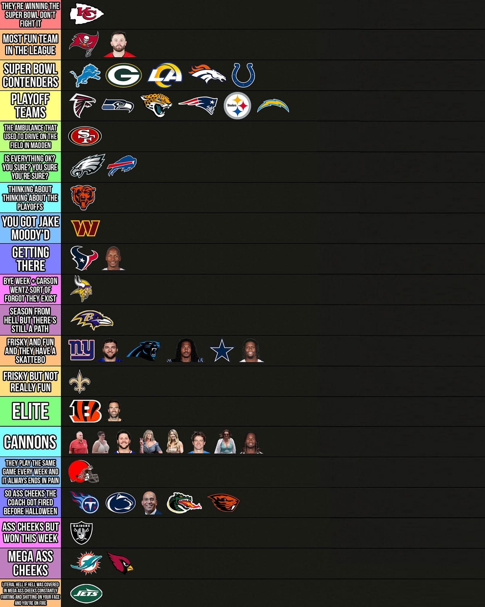 The Eagles and the Bills seem to be in a funk. No team is really dominant right now.