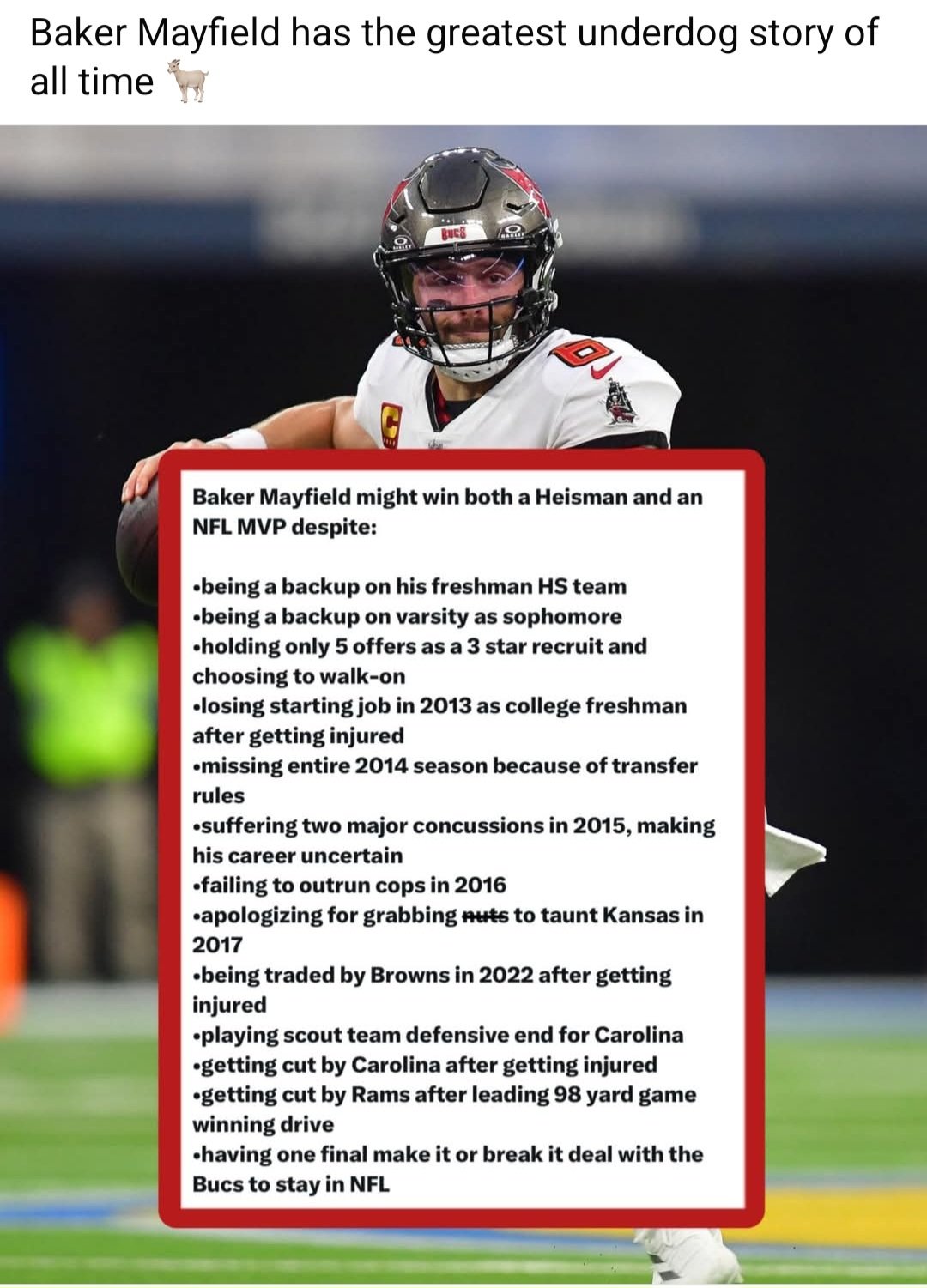 In fairness to the Browns and Baker Mayfield I don't really think he "died" in Cleveland but he did make one crucial mistake and it almost cost him his career. When Anthony Schwartz quit on the ball and Baker's pass was intercepted Mayfield never should have tried to tackle that ball carrier. If not for that one lapse in judgement he could possibly still be in Cleveland. To compound that mistake there is shared blame between the team and Mayfield to hurry him back from the injury. Hindsight is always 20/20, but if he would have had surgery right away and the team would have been more patient things may have been different. But, alas, if my Aunt had balls she'd be my Uncle.