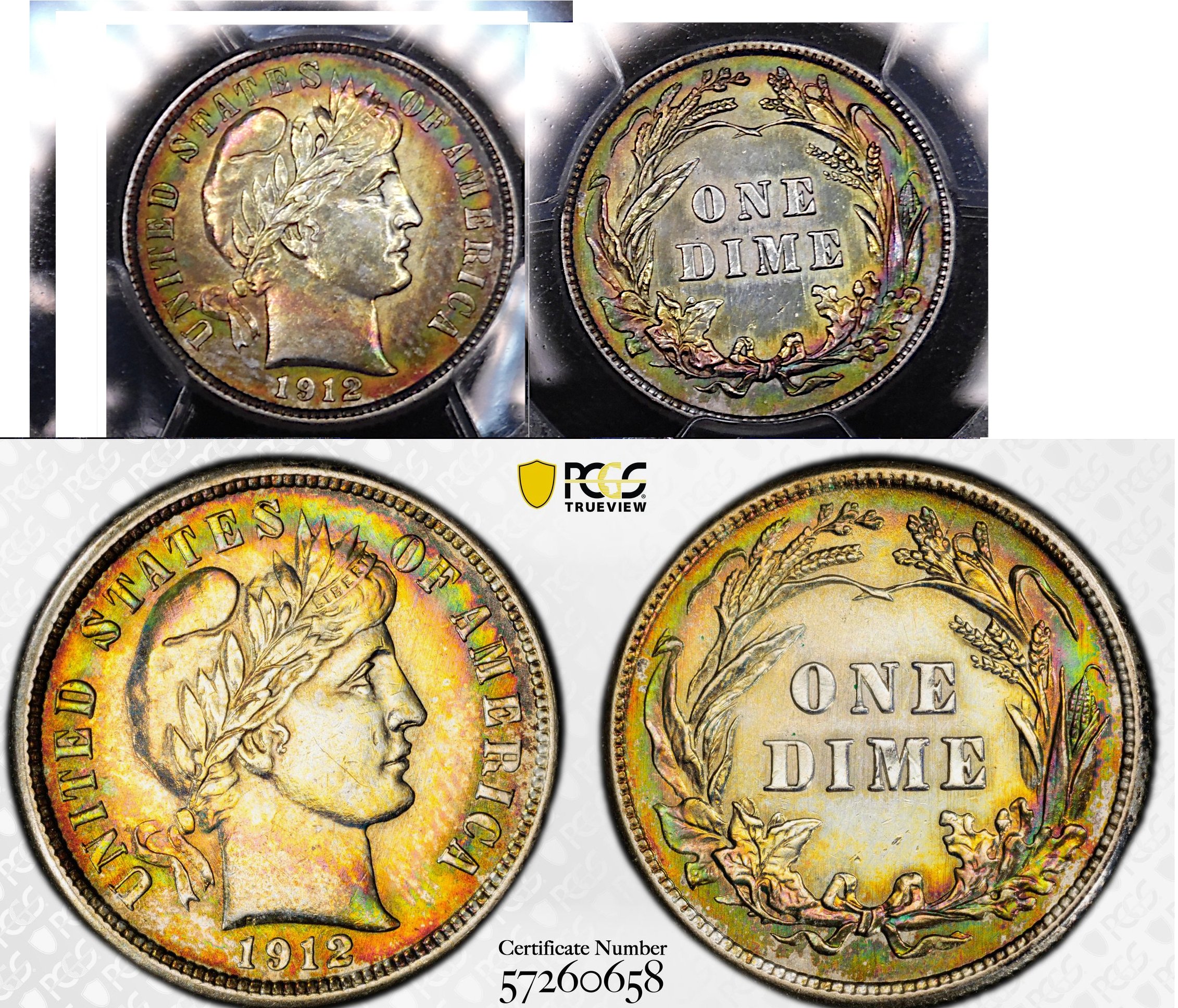 PCGS UNC "details" superbly-toned Barber Dime