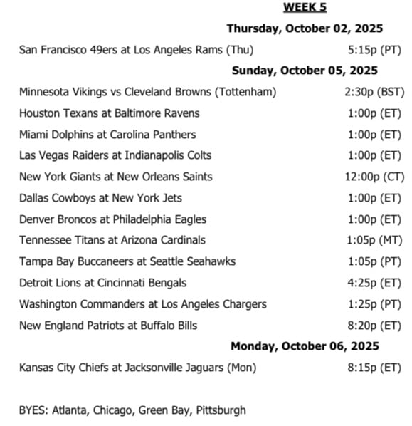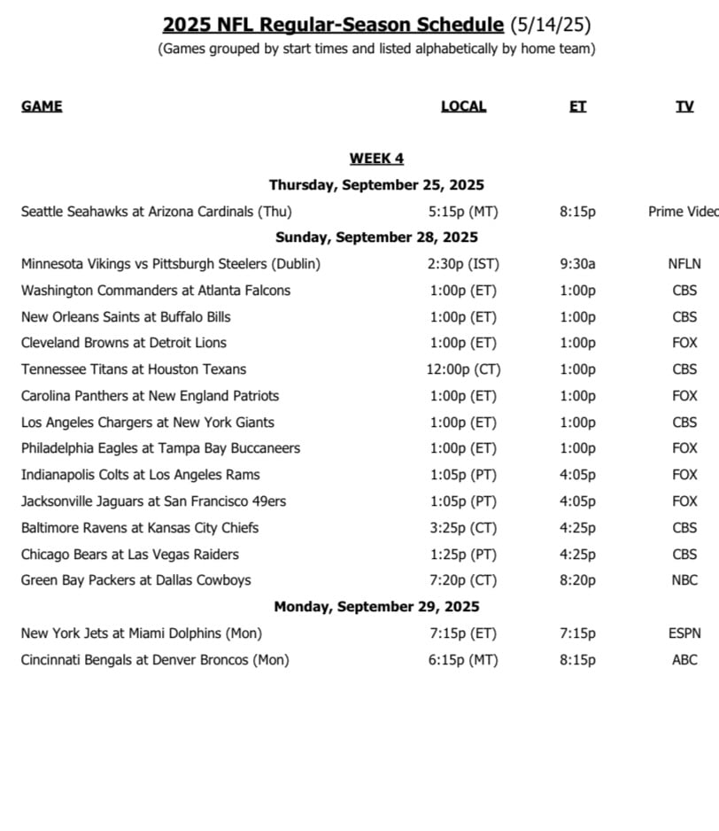 Arizona- Buff- Atlanta- Minn- Det- Houston- Pats- Chargers- Phily- Rams- 49ers- KC- Raiders- G Bay- Miami- Den