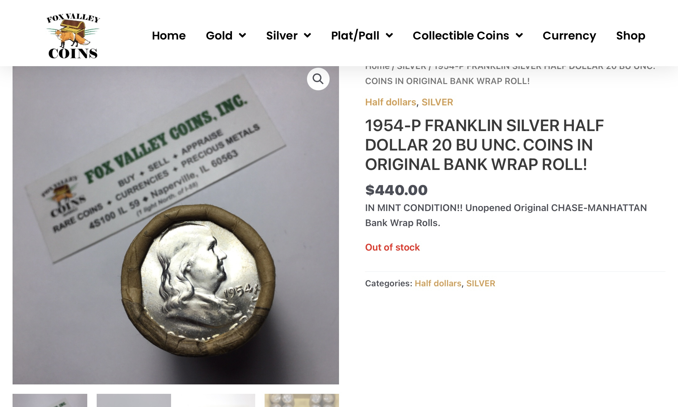 FS: 1954 Half Dollar Bank Wrapped Roll.