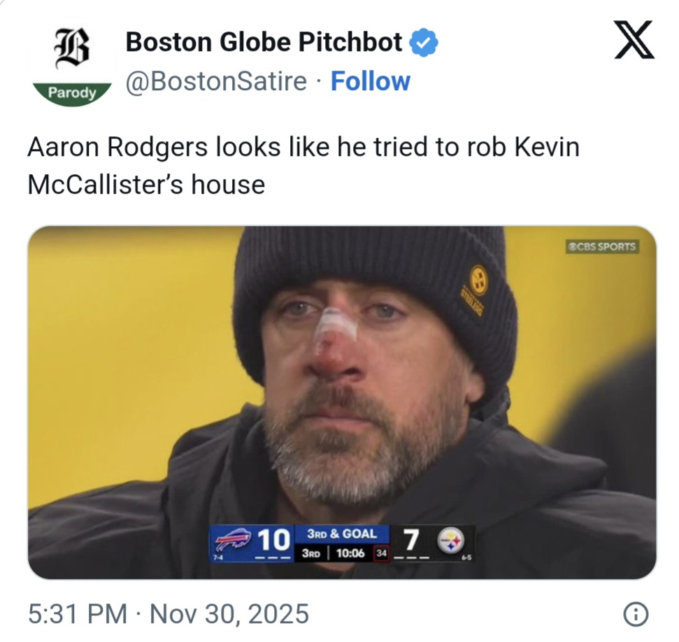 It's his age, he's an old man now, I knew it would catch up with him. Didn't you see the game? Mike Tomlin had to bring in a bed and put it on the sidelines, Rodgers was actually taking naps while the Steelers defense was on the field. They caught it on camera, it was quite embarrassing.