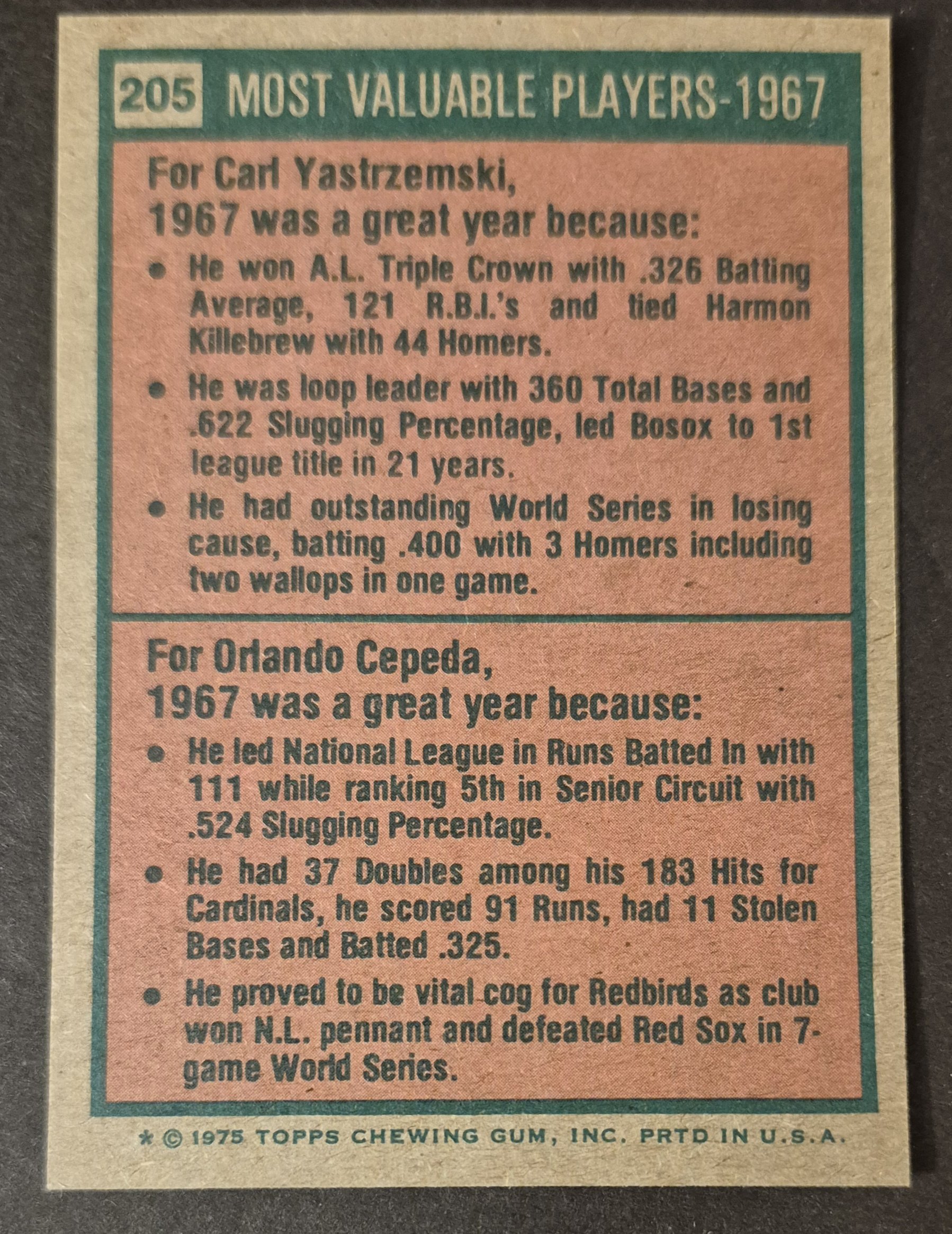 #205 1967 MVPs Yastrzemski/Cepeda