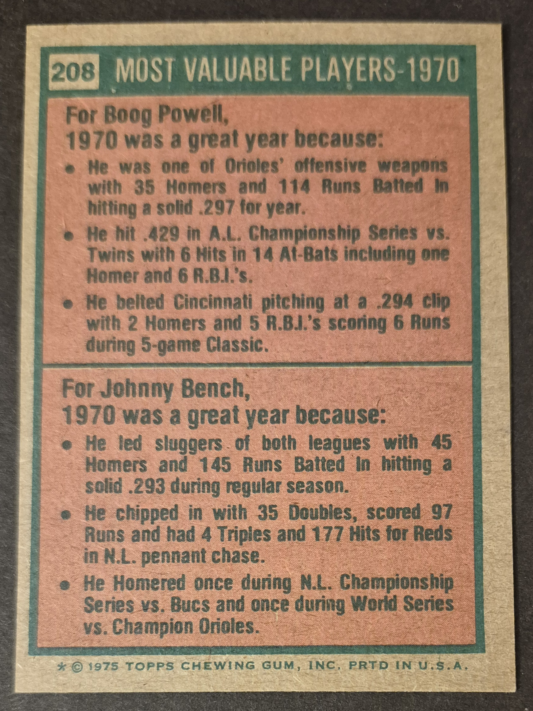 #208 1970 MVPs Powell/Bench