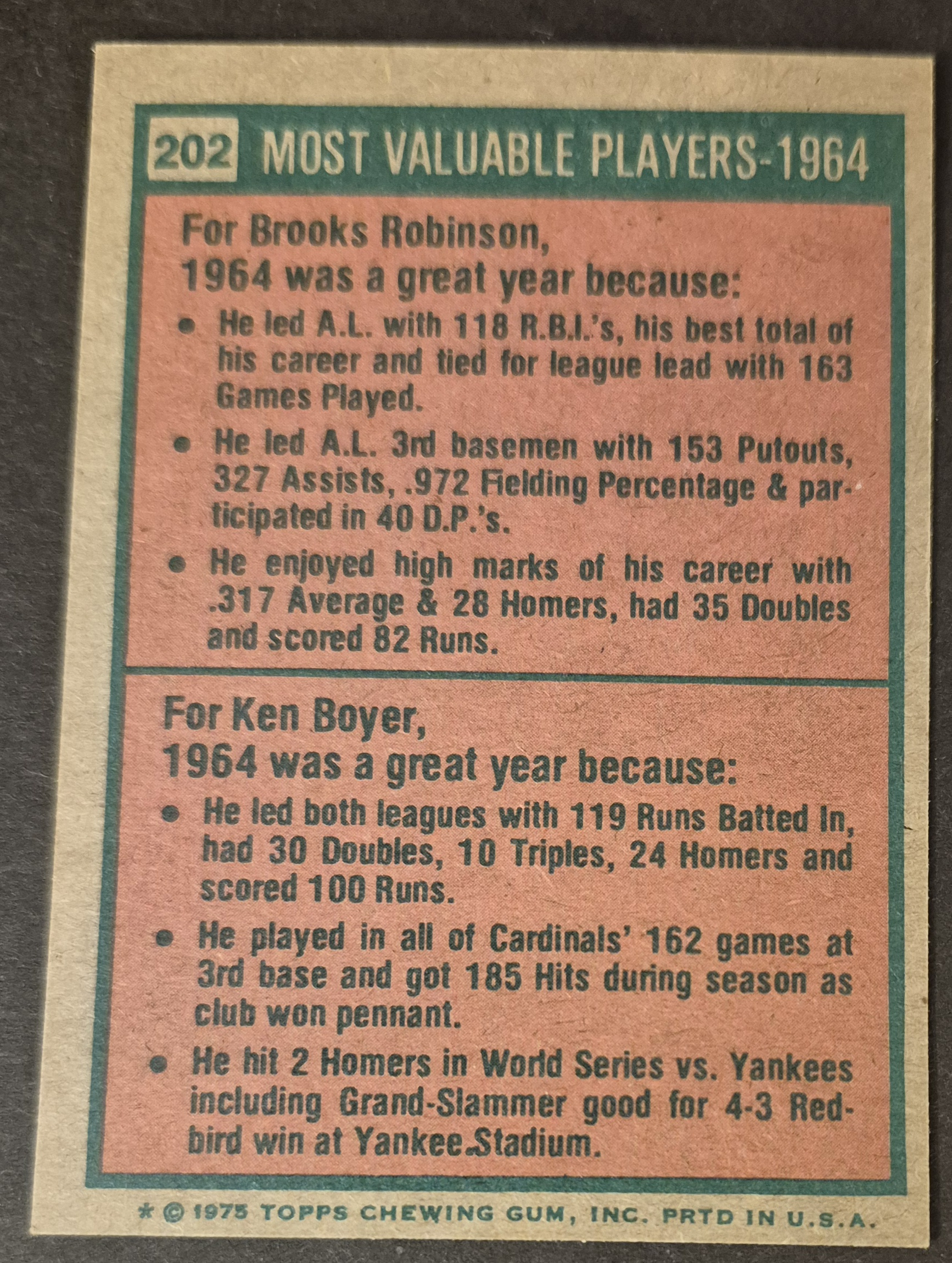 #202 1964 MVPs Robinson/Boyer