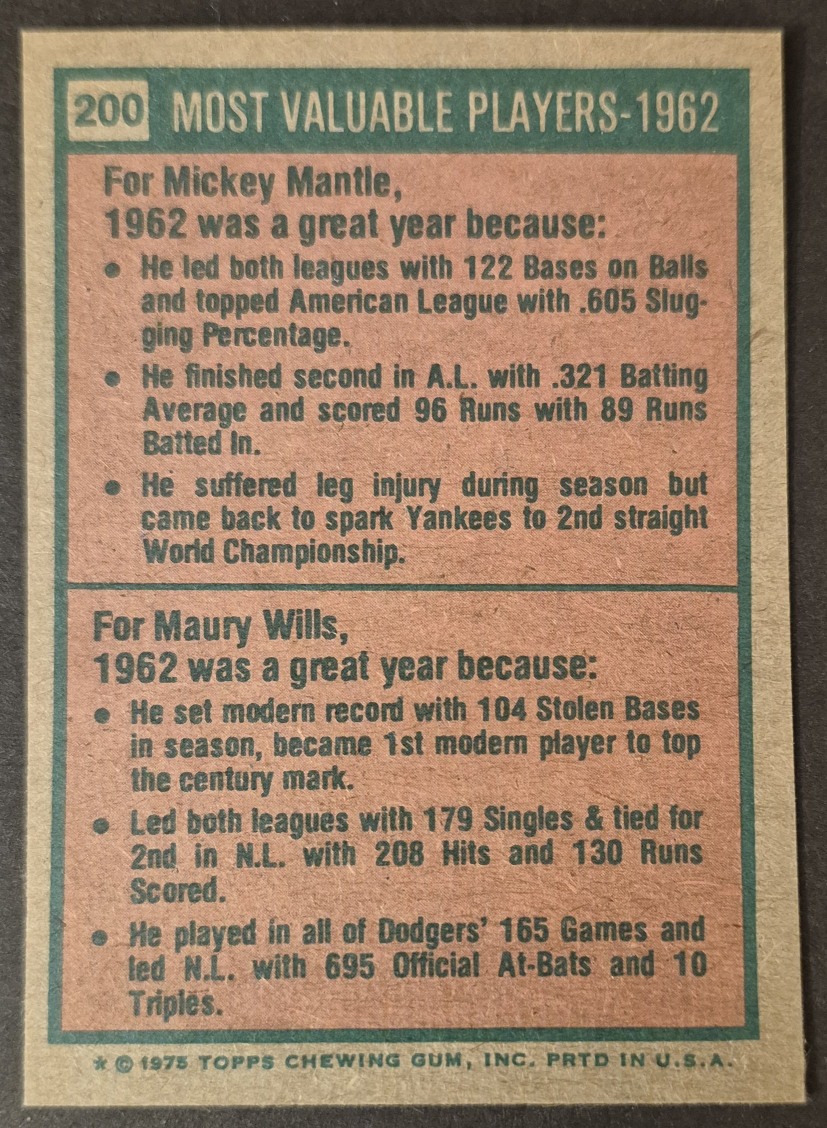 #200 1962 MVPs Mantle/Wills