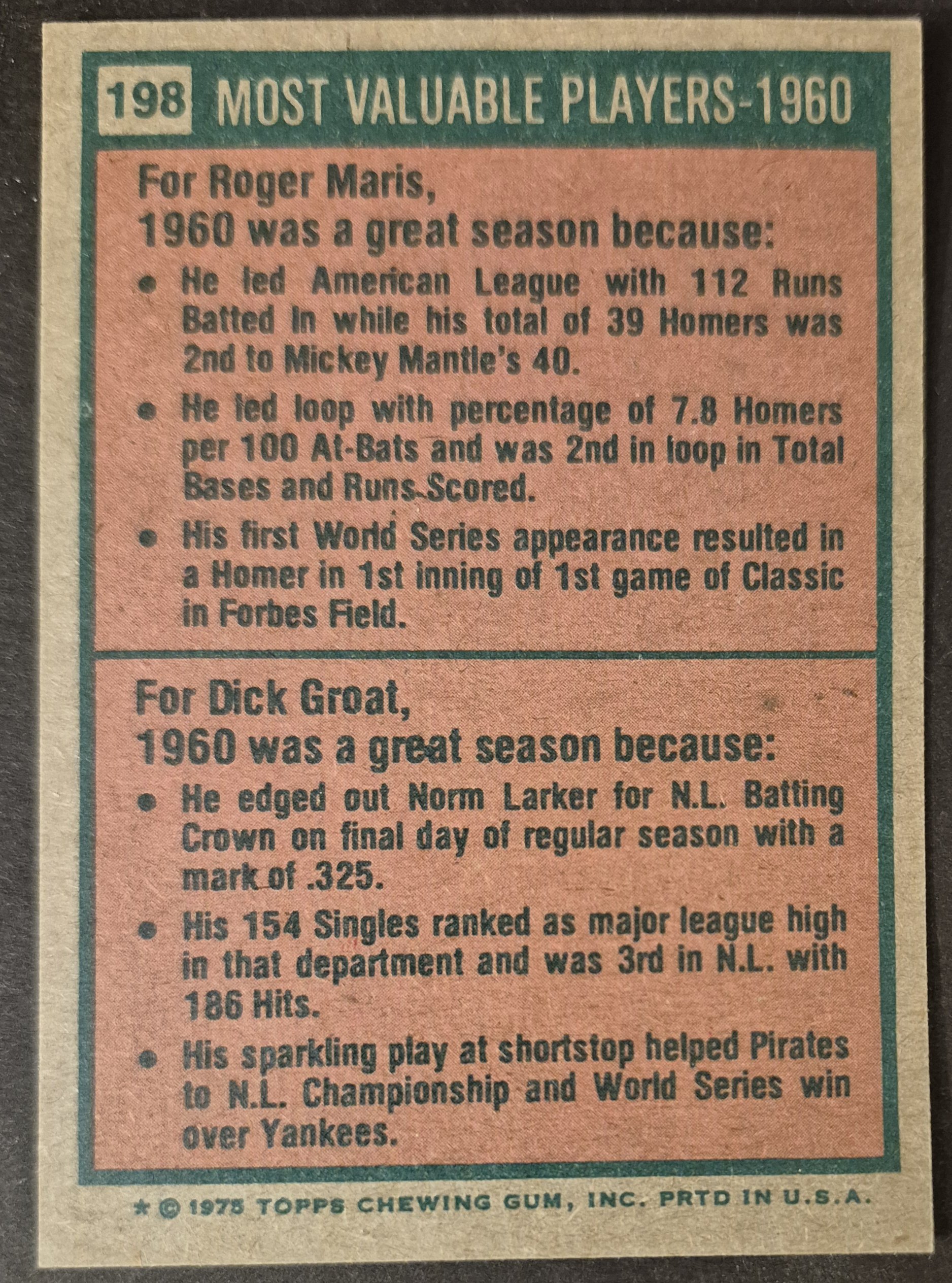 #198 1960 MVPs Maris/Groat