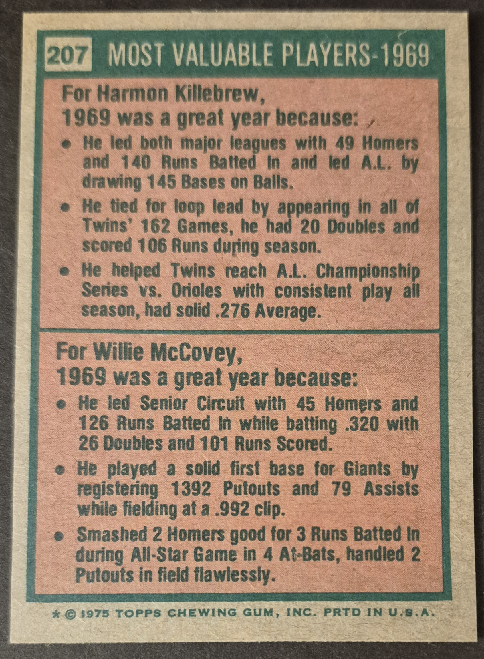 #207 1969 MVPs Killebrew/McCovey