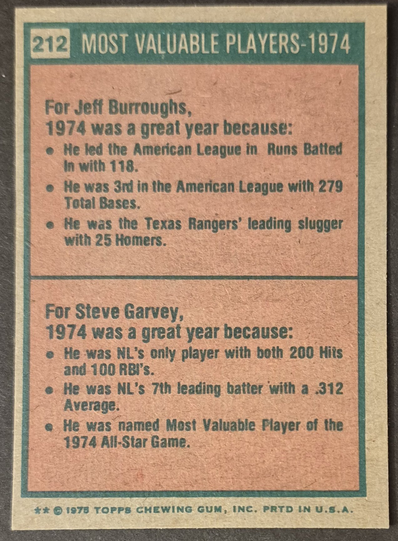 #212 1974 MVPs Burroughs/Garvey