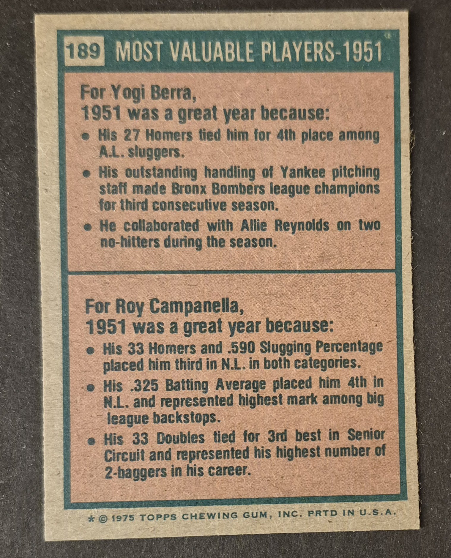 #189 1951 MVPs Berra/Campanella