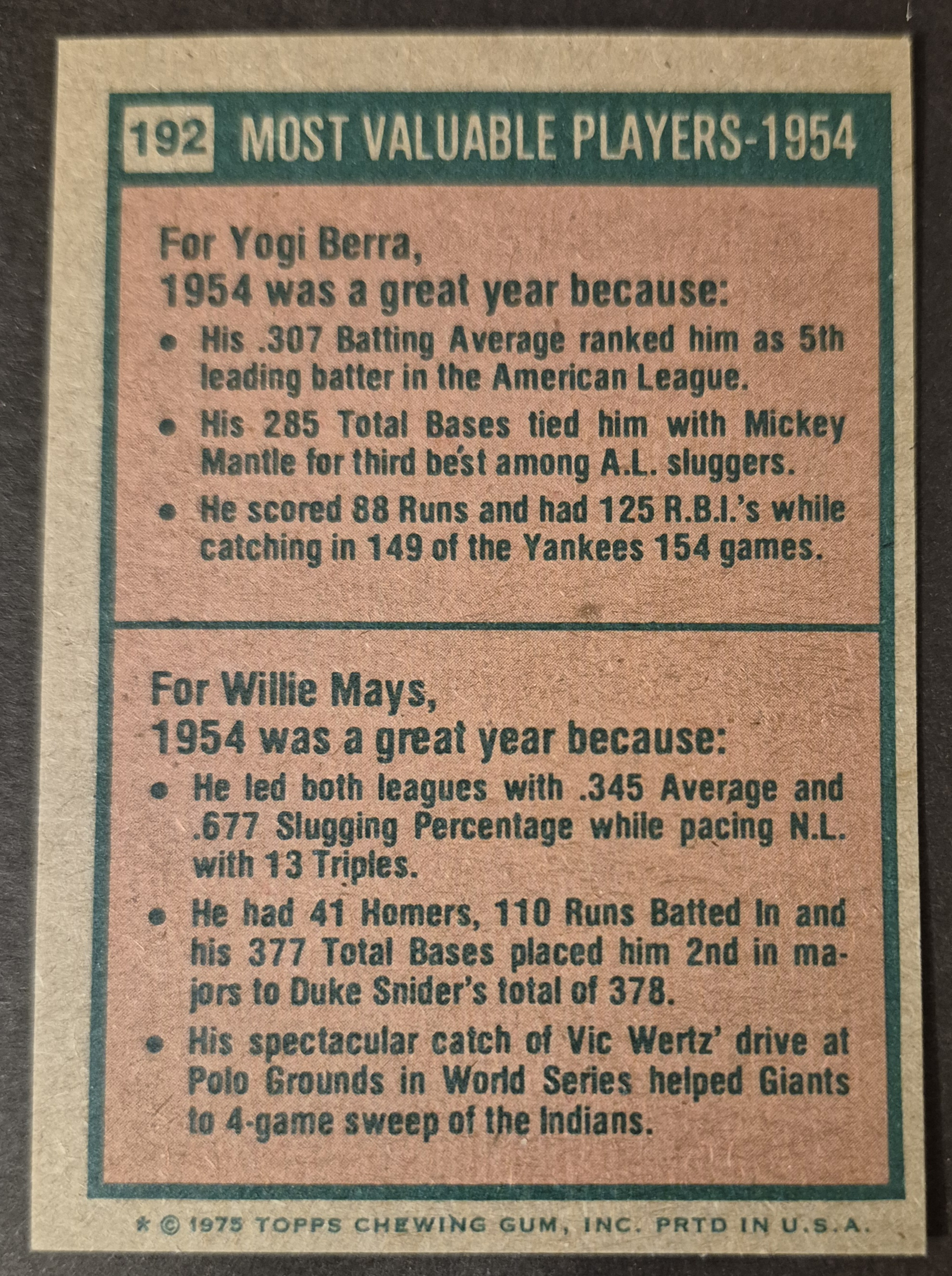 #192 1954 MVPs Berra/Mays