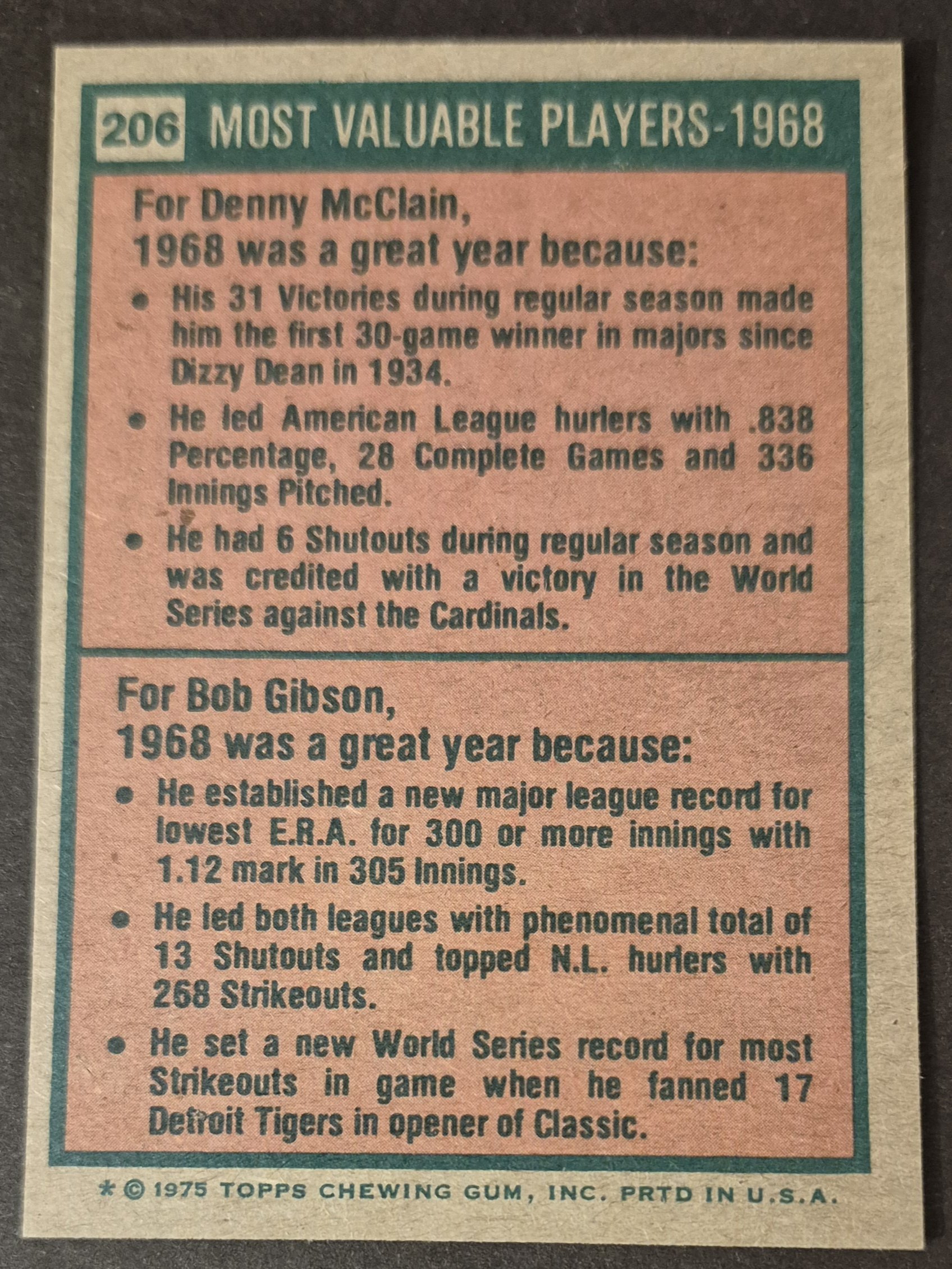 #206 1968 MVPs McLain/Gibson