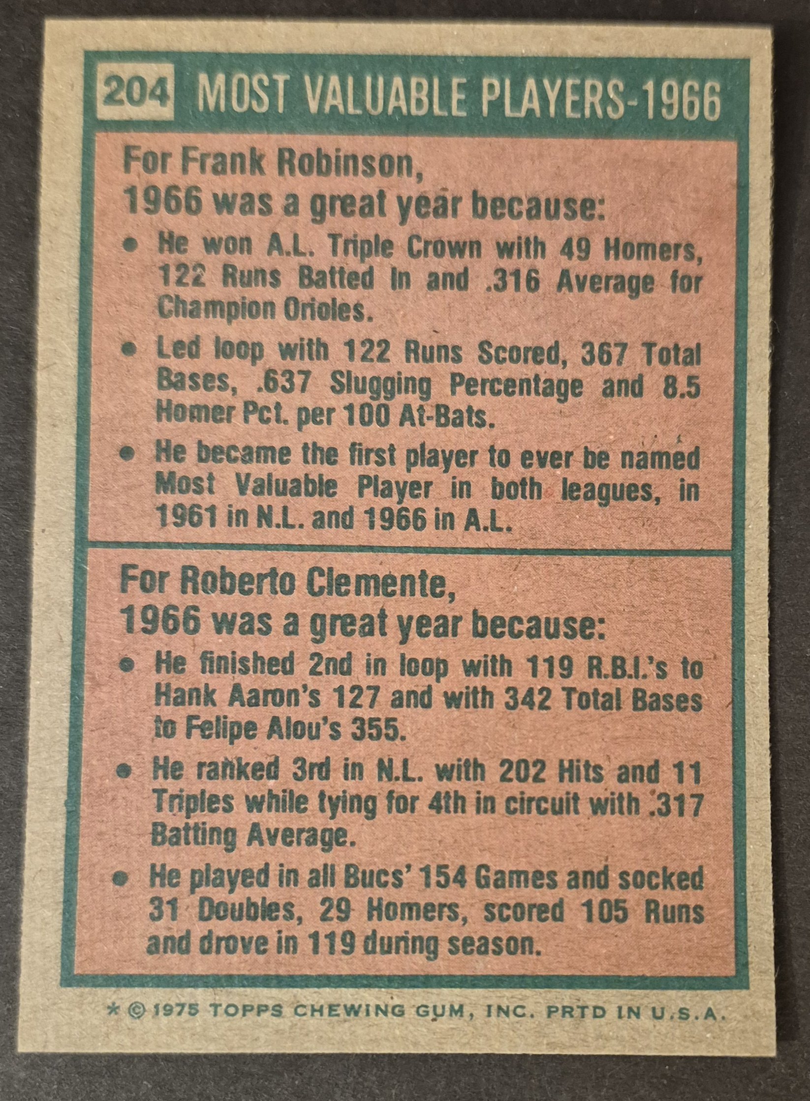 #204 1966 MVPs Robinson/Clemente