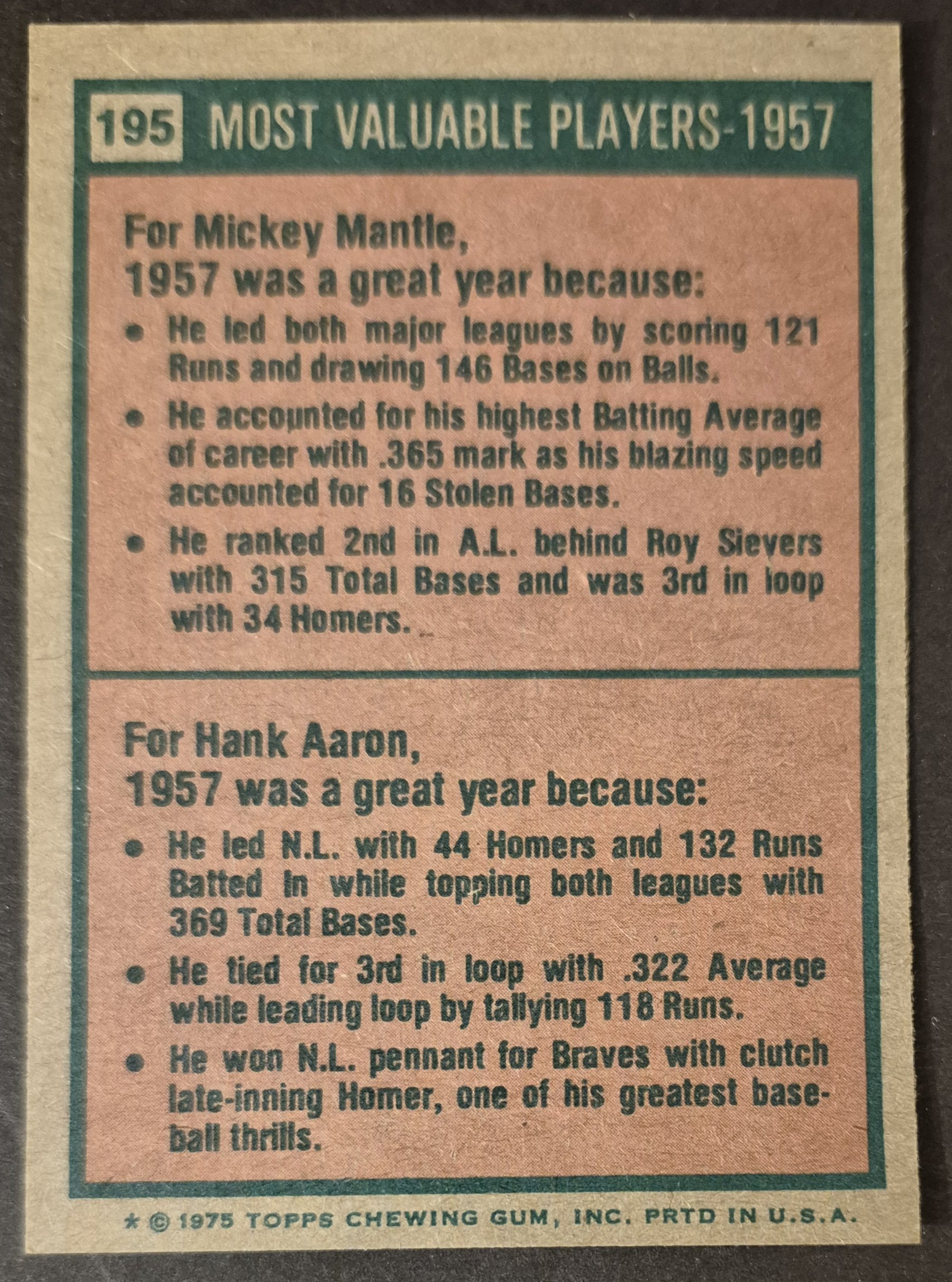 #195 1957 MVPs Mantle/Aaron