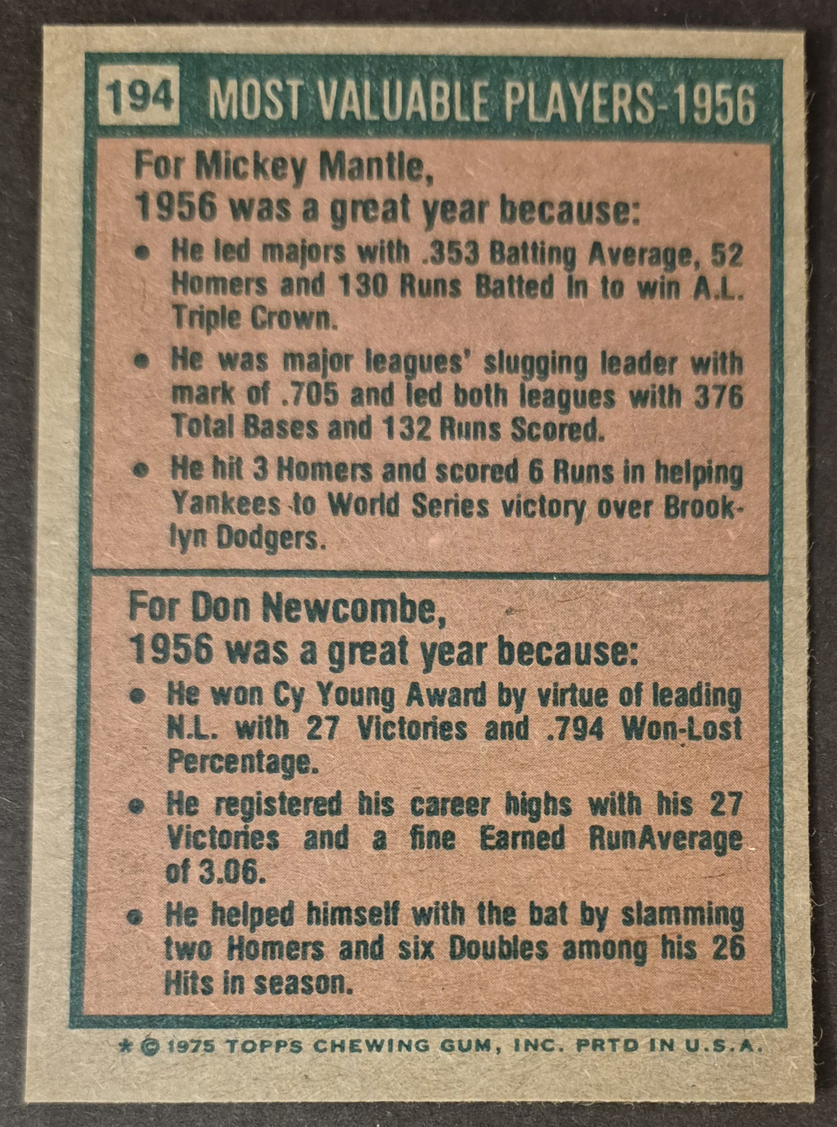 #194 1956 MVPs Mantle/Newcombe