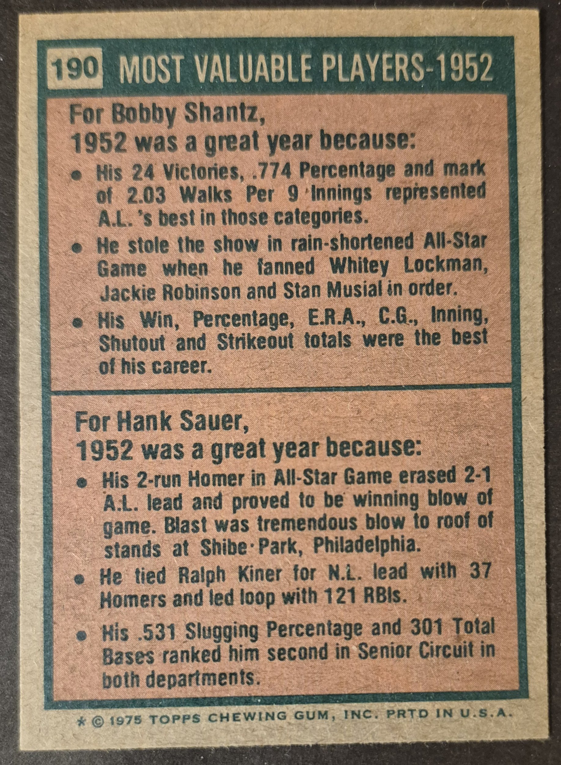 #190 1952 MVPs Shantz/Sauer