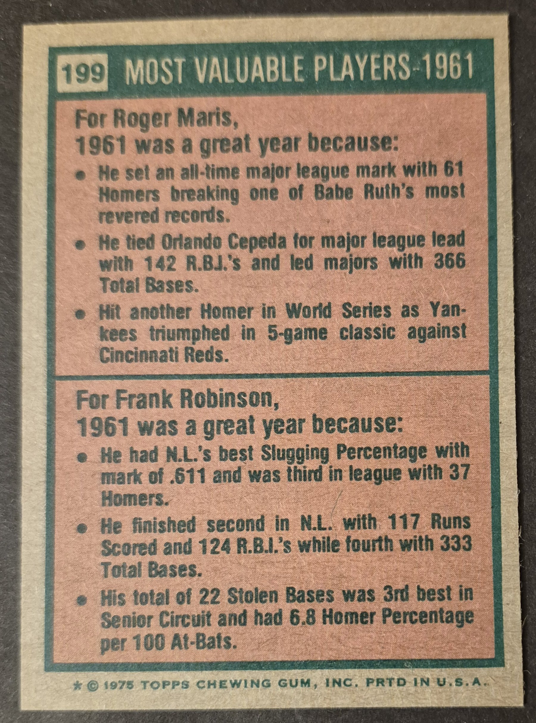 #199 1961 MVPs Maris/Robinson